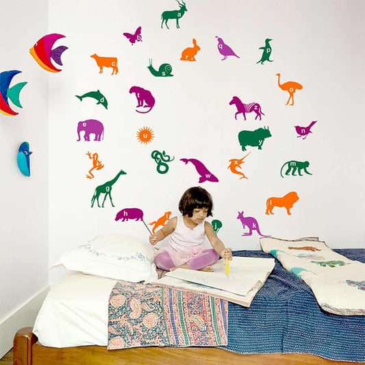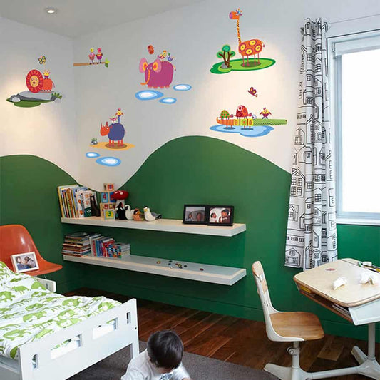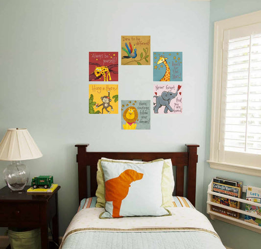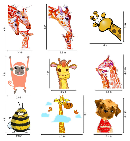 Vinyl Colourful Animals Switchboard Sticker (Multicolour)- Set of 9