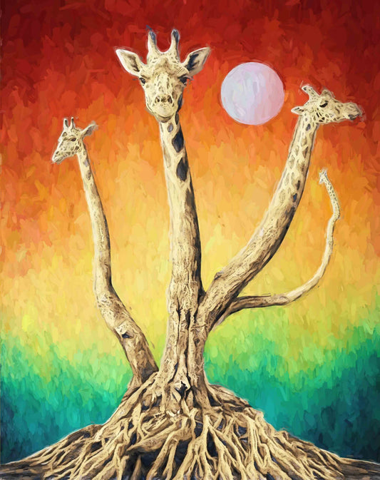 Giraffe as a Tree & Branches Colorful Wall Digital Print