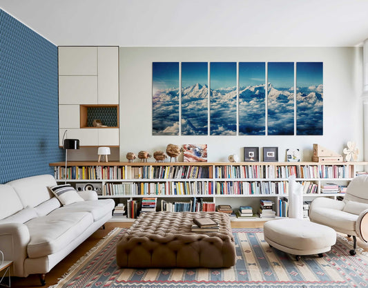Group of Cloudy Snow Covered Himalayan Mountains Wall Canvas Print