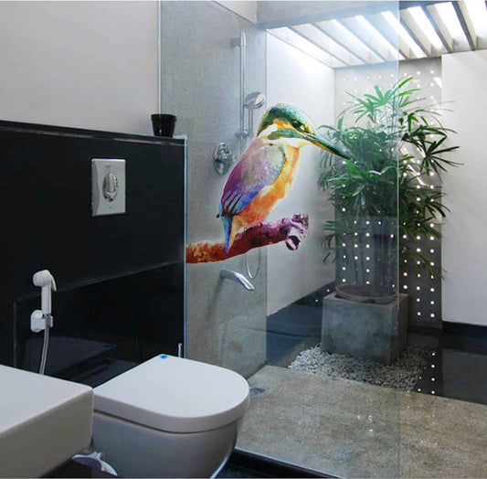 Kingfisher on Branch Water Colour Style Glass Sticker