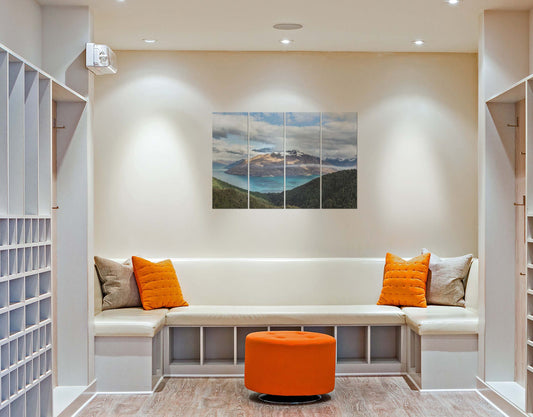Landscape Mountain Under Cloudy Sky & Blue River Wall Digital Print