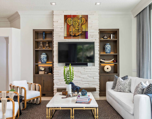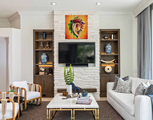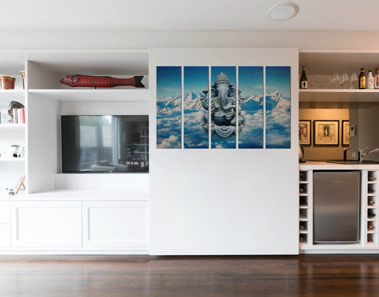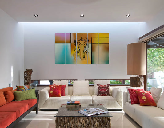 Lord Ganesha Face Illustration with Colorful Background Wall Digital Print