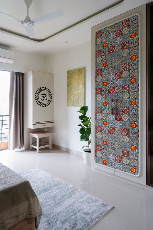 Mosaic Lantern Red Orange Shades Durable Surface Decoration Film for Kitchen, Cabinet, Table, Furniture, Wall, Bathroom, Door, Refurbishment