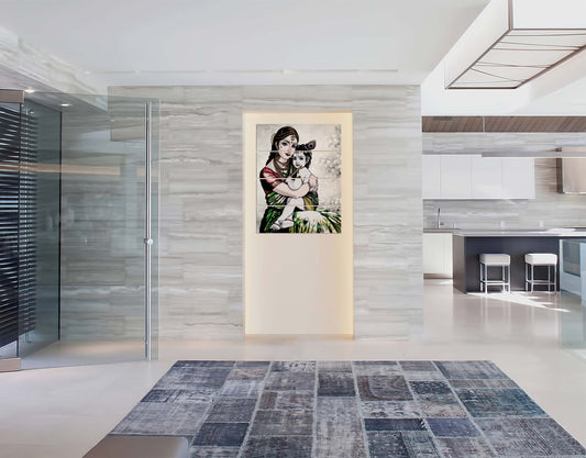 Muddu Krishna Sitting on his Mother Lap Painting Wall Painting