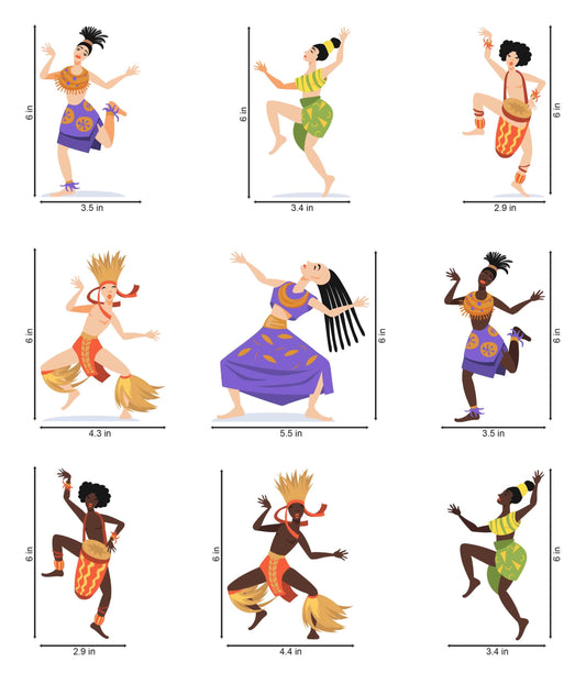 Vinyl African Dancer Set Switchboard Sticker - Set of 9 (Multicolor)