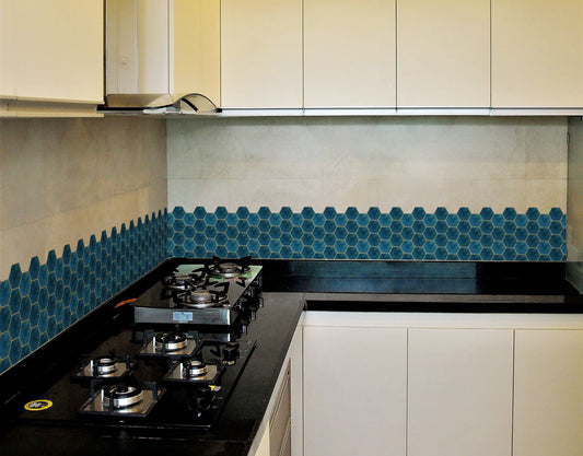 Teal Blue Hexagon Tile Sticker - Durable Surface Decoration Film for Kitchen, Cabinet, Table, Furniture, Wall, Bathroom, Door, Refurbishment