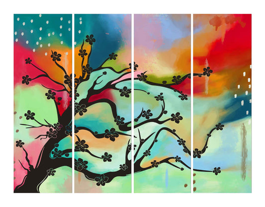 Tree with Branch Full of Flowers on Colorful Background Wall Photo Print
