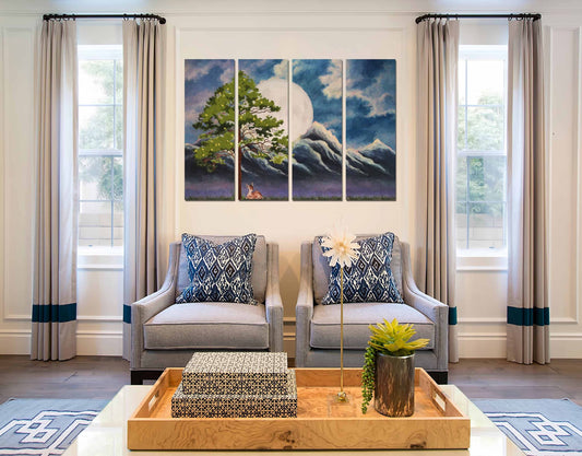 Tree with Summits & Cloudy Sun Wall Art Painting