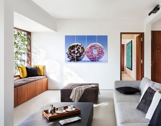 Two Donuts with Brown Pink & Blue Chocolate Spreaded Wall Wall Painting