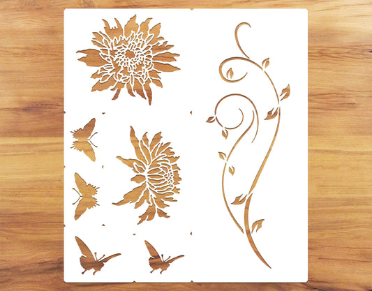 White Blue Bouquet Flowers Painted Adhesive Wall Border