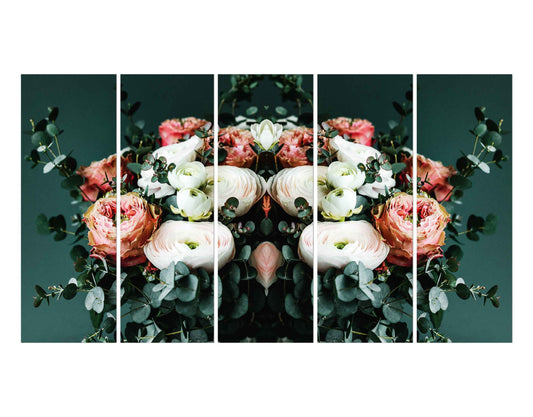 White & Pink Rose Flowers with Leaves Wall Wall Painting