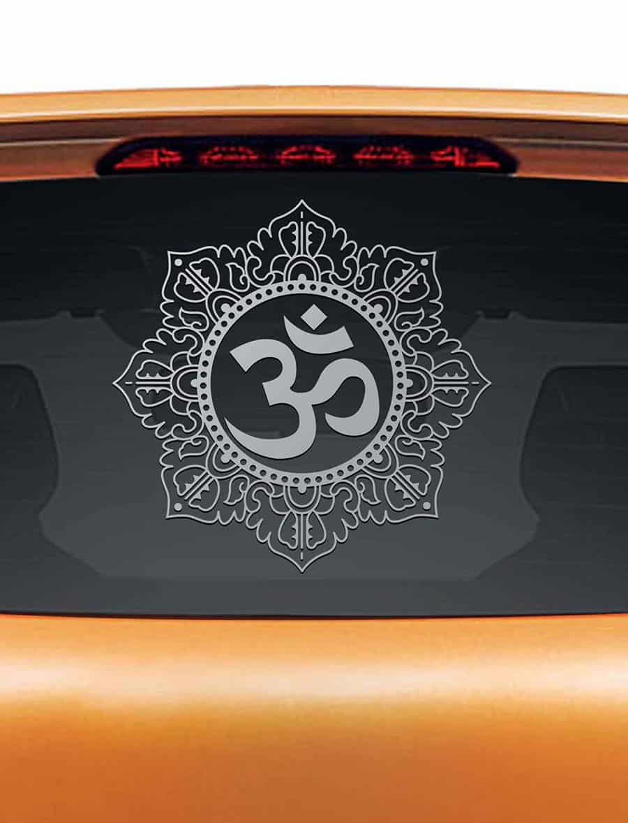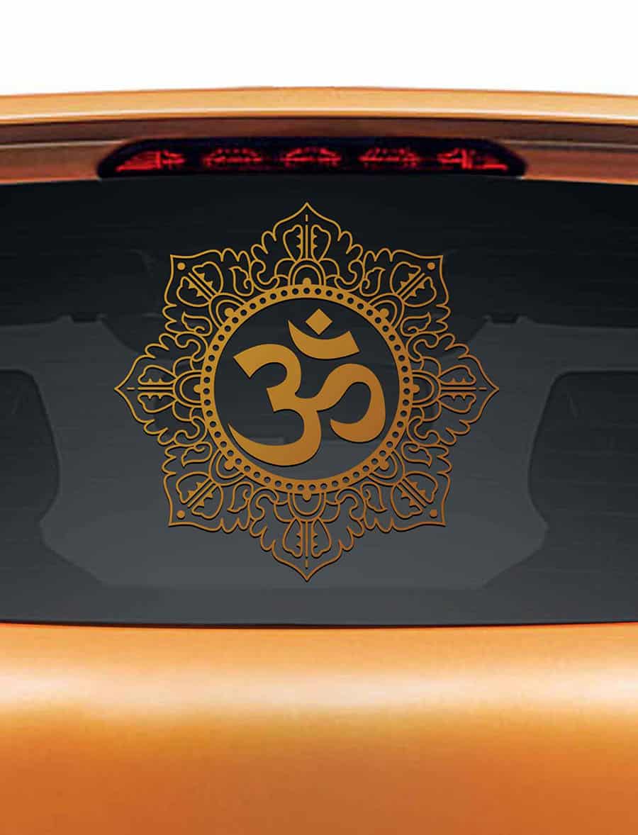 Om/Aum, the eternal syllable is an invocation to God. This beautifully designed Om is inspiring and radiates energy. Place this on your car rear glass and you will always be beginning and ending your day with OM.The size of the design is 12 inch in diameter suitable for all cars rear glass sizes.