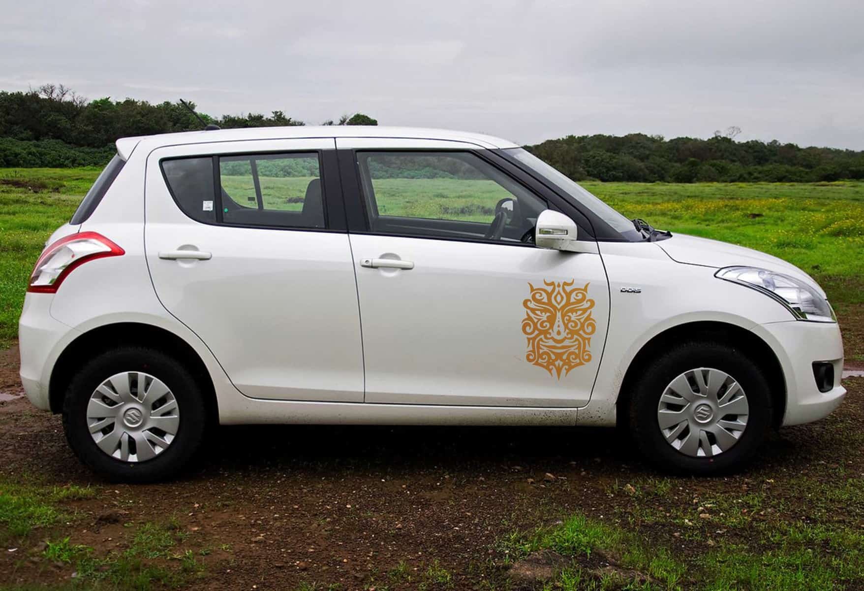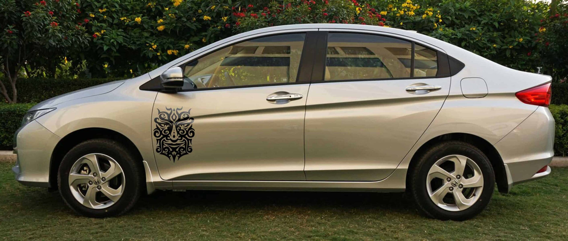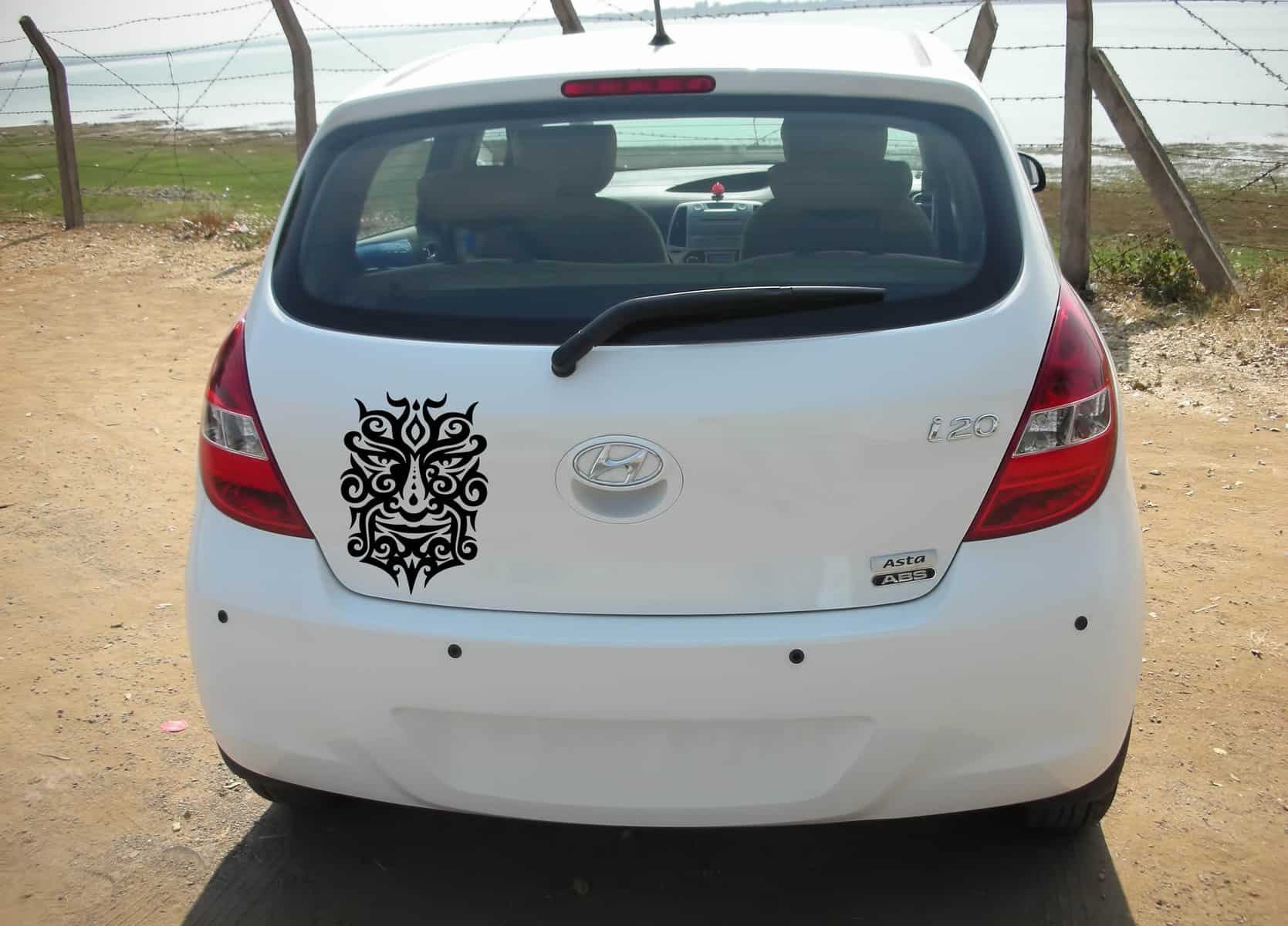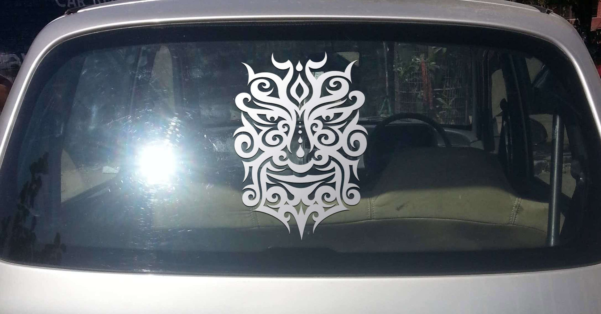 Feel like wearing a mask, then Face off your day with this funky tribal design car sticker from WallDesign.