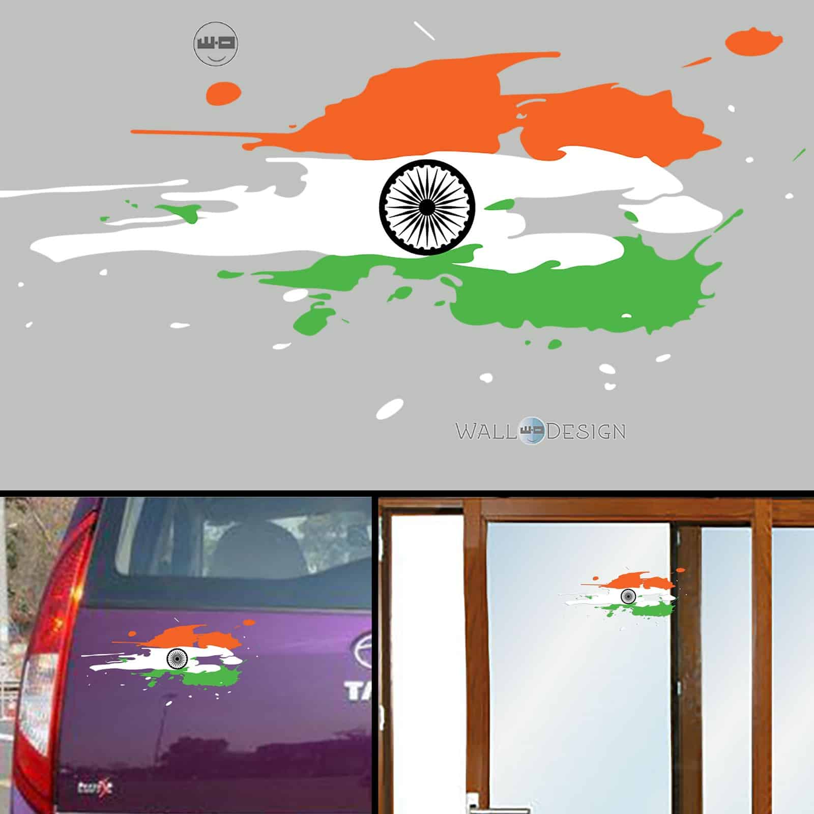 India Flag Jai Bharath Flag Car Stickers for Body / Glass / Wall - Colour Splash Design