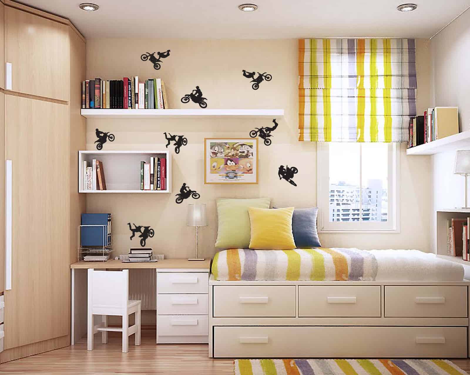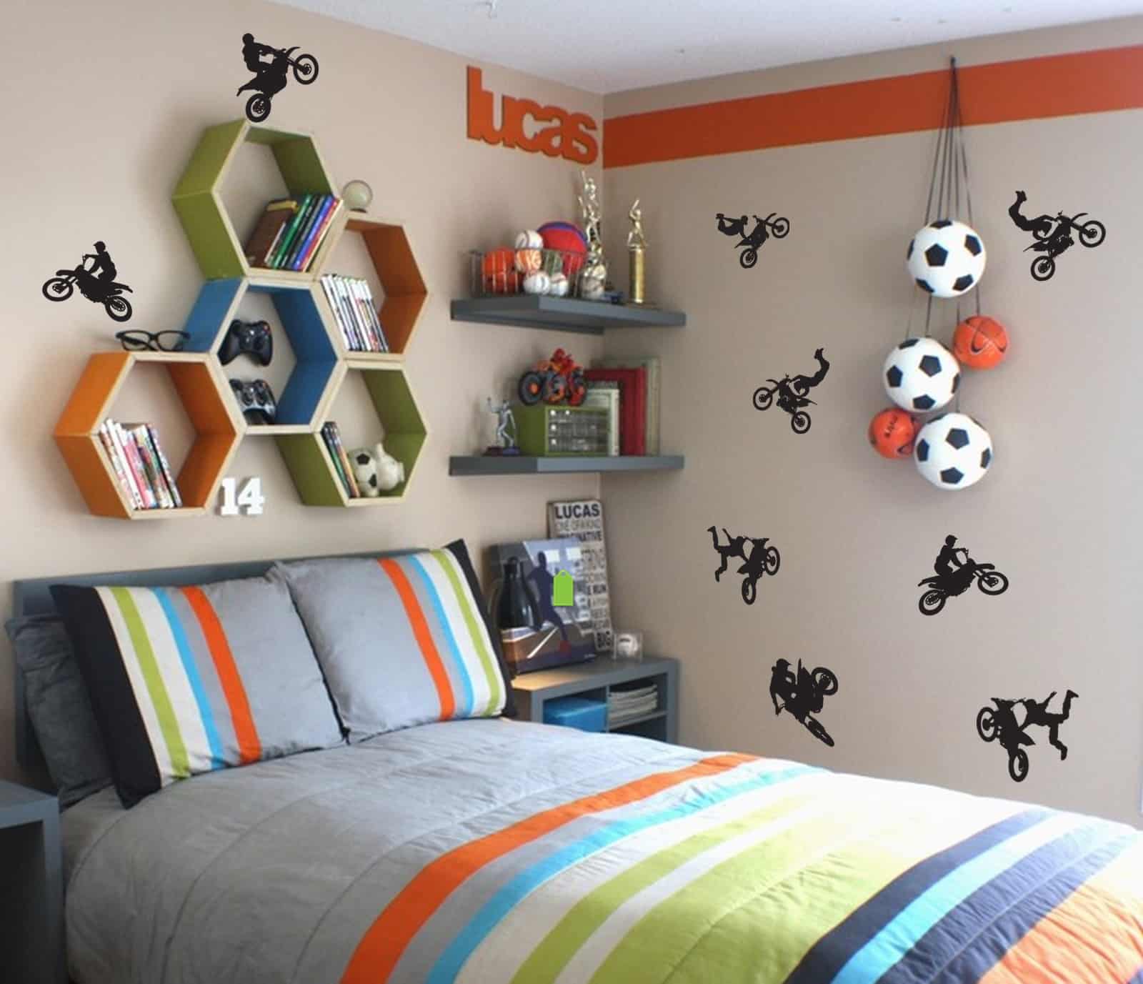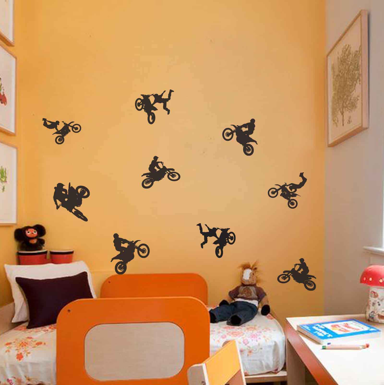 Bring Mounesh Cross Biking into your space for an amazing experience. Feel the strength and get inspired to go higher. This biker vinyl sticker is ideal for a teen boy room.