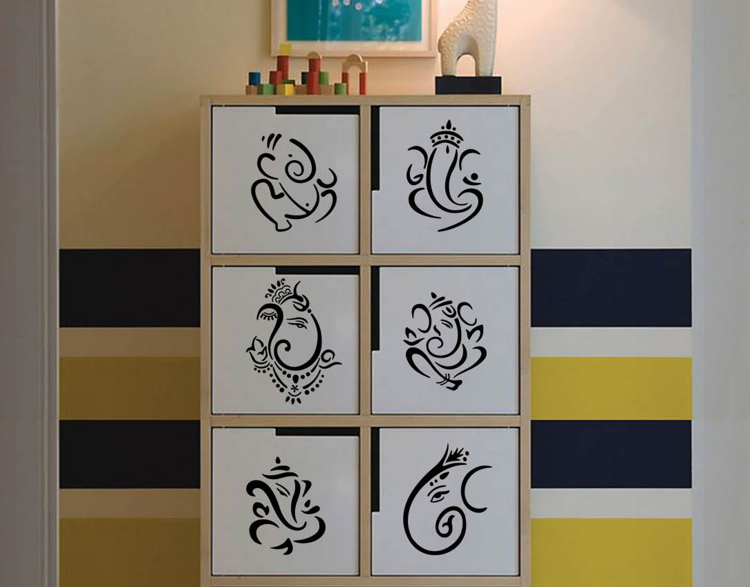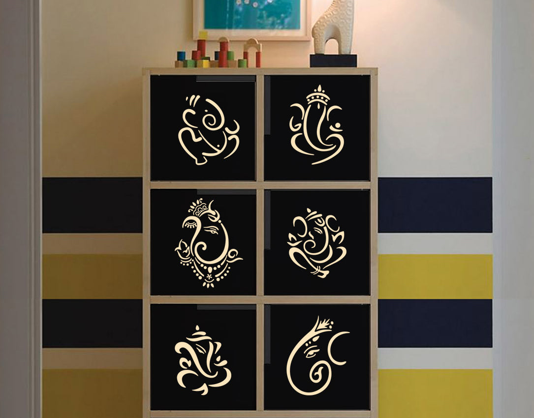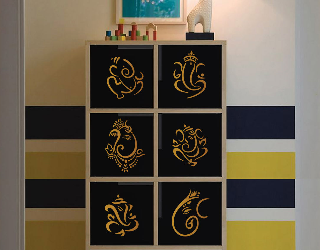 This mini series set of 6 Ganesha decals is suitable for applying on your bike, switchboard, home entrance or practically anywhere you want his presence felt.