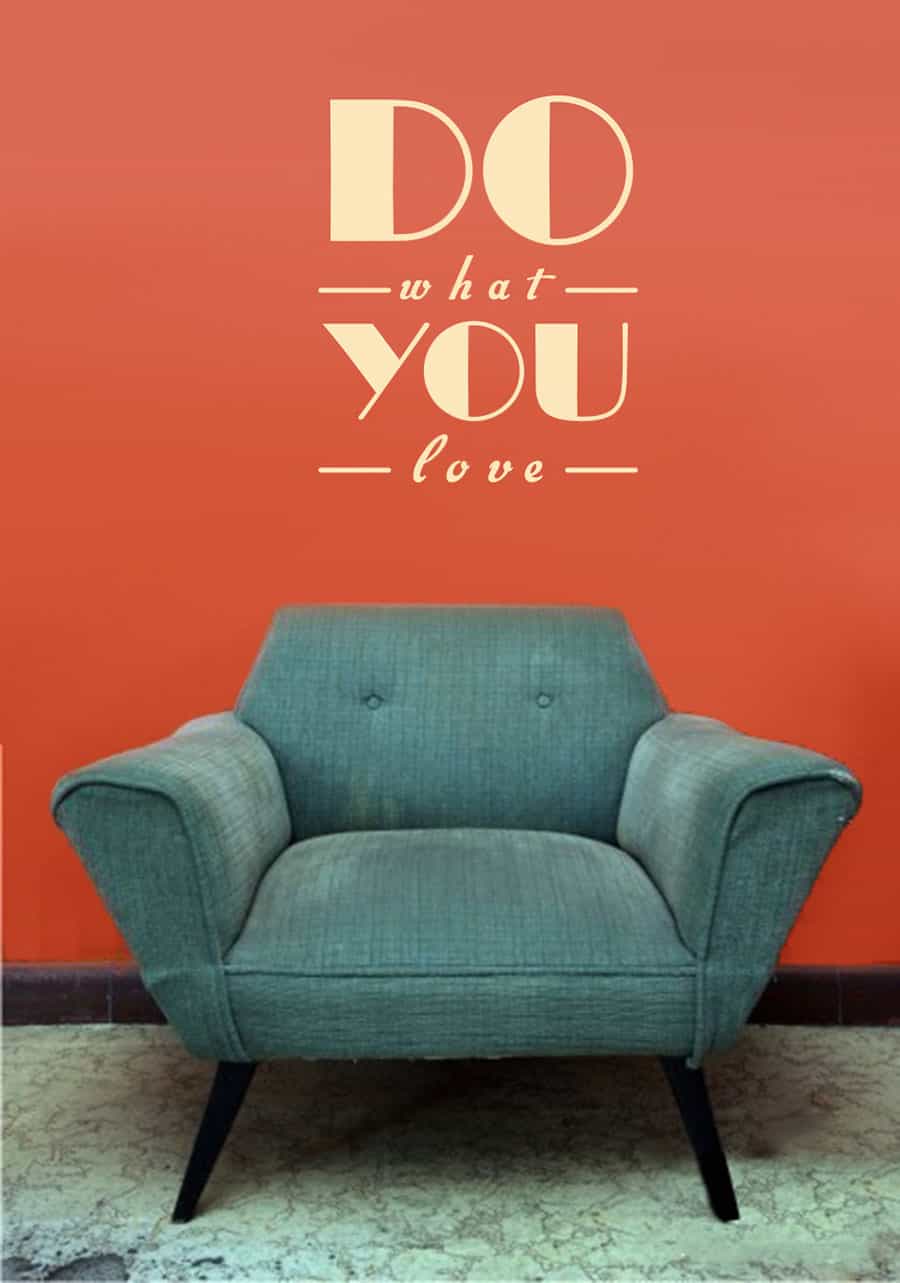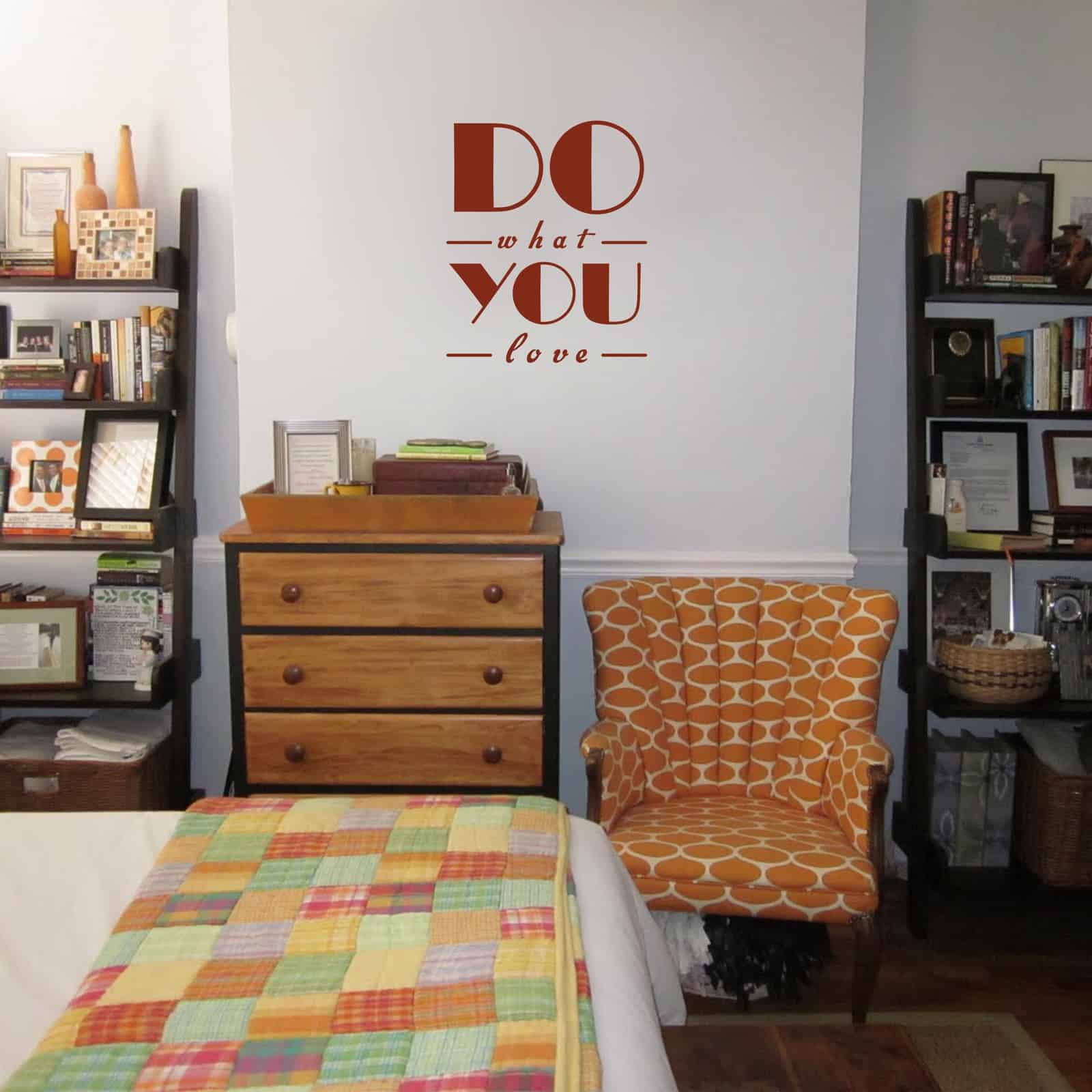 Gear up to embrace your passions! No more hesitation, the best is in a word to Do What You Love. Indeed, such vinyl wall quotes will ensure you start fulfilling your dreams. So select now the color of your vinyl wall quotes among the 35+ shades available.