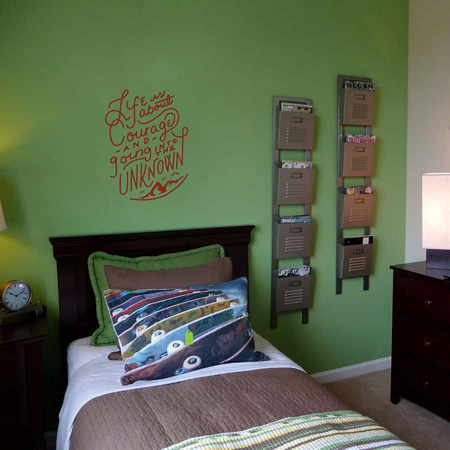 In the first place, remember that?wall quotes decals bring positive changes once affixed on walls. True to this point, Life is About Courage wall sticker can have a great life impact. Make the teen and study rooms vibrate with successful energy. Don't wait anymore to pick up the WallDesign quote decal that is about to transform your inner self.