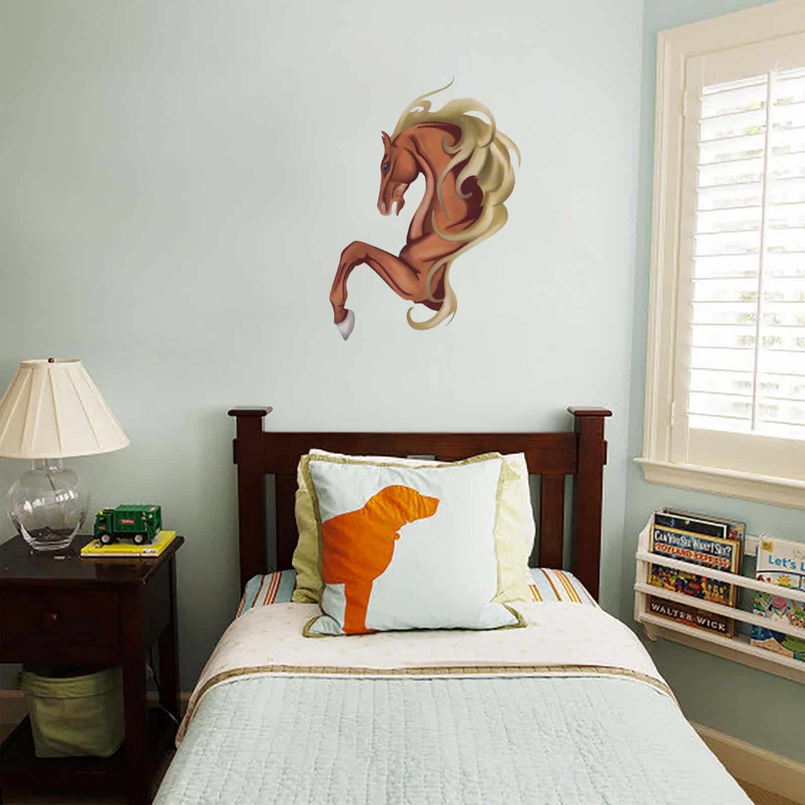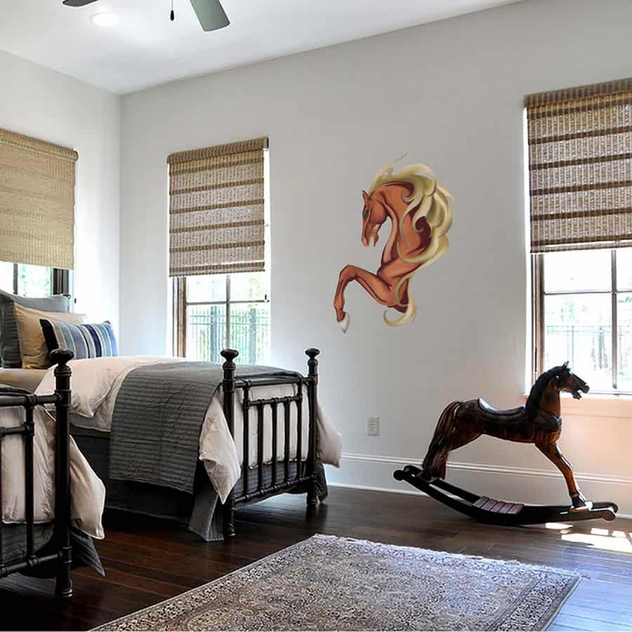 Hunter Horse will make any kid's room radiate. This printed decal has a sublime painted look. Since it is a repositionable sticker, you can change it from one room to another one and even from the wall to the door or onto the cupboard.