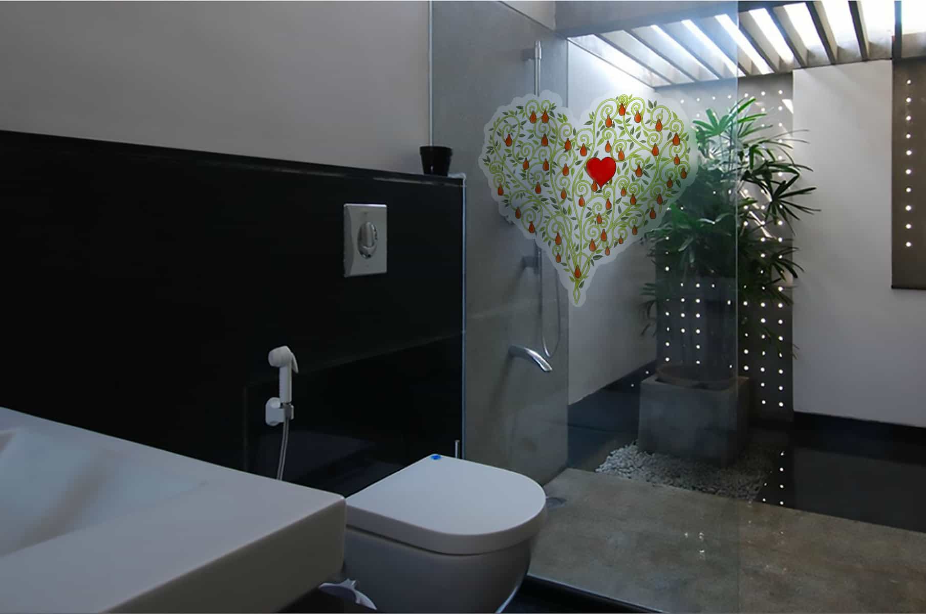 Feel the emotions with Life Tree Heart. This stand-alone decal has been designed with a subtle water paint effect color. Printed on a frost film, this glass sticker will radiate on the glass partition of the shower cubicle or on a glass window.