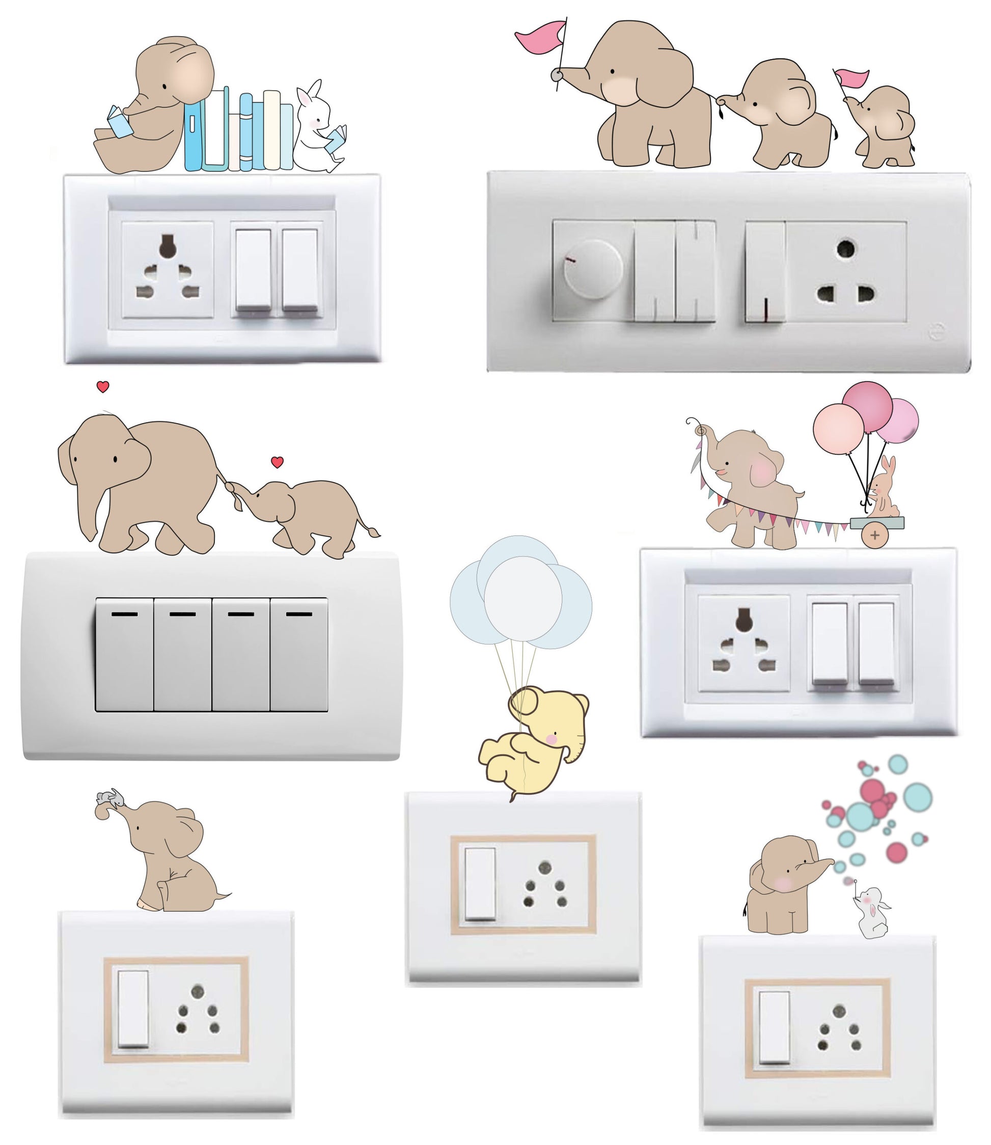 Vinyl Cute Baby Elephants Switchboard Sticker (Multicolour)- Set of 7 Self-Adhesive