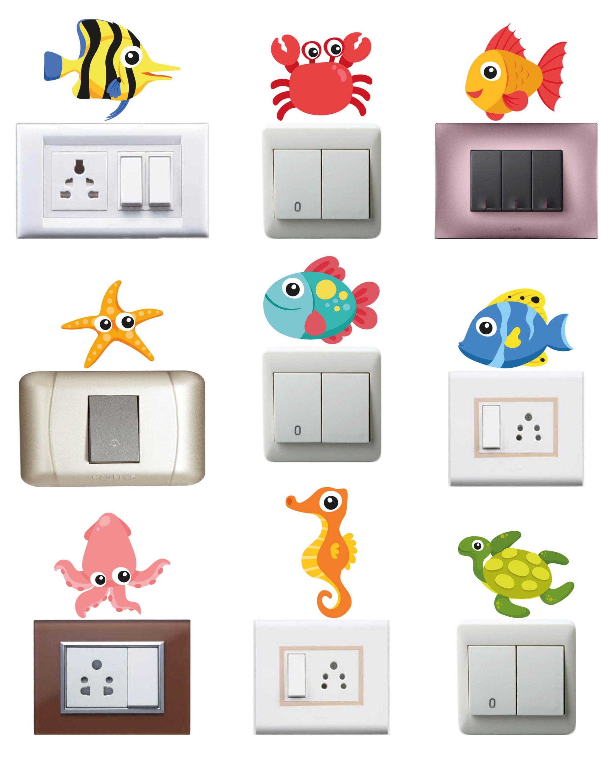 WallDesign's high quality vinyl with matte finish self adhesive sticker is a switchboard sticker which is affixed to a wall or other smooth surface for decoration (Set of 9).