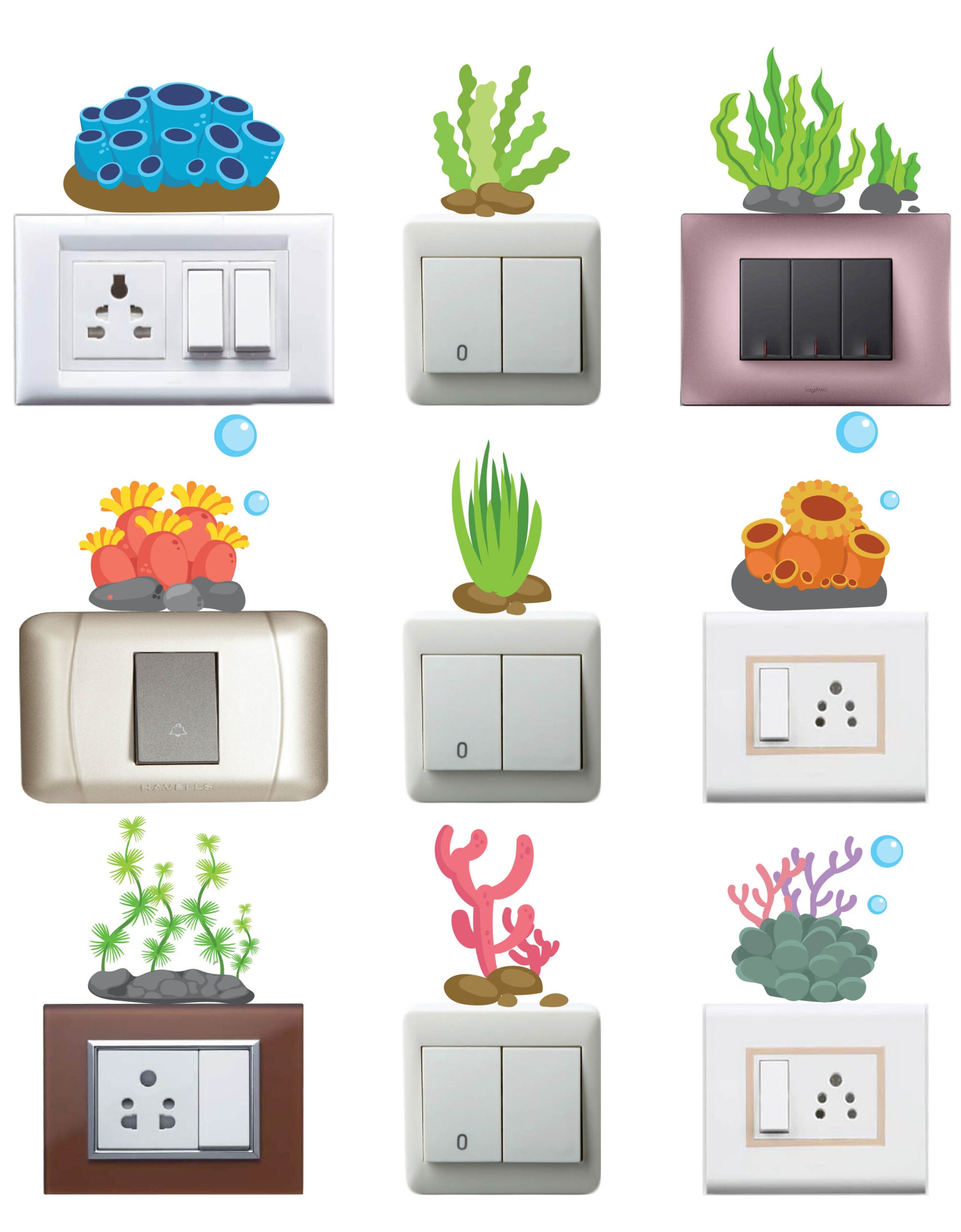 WallDesign's high quality vinyl with matte finish self adhesive sticker is a switchboard sticker which is affixed to a wall or other smooth surface for decoration (Set of 9).