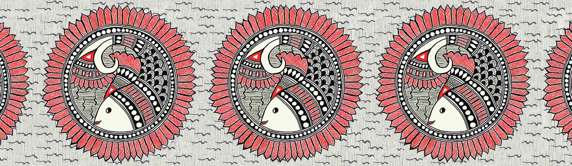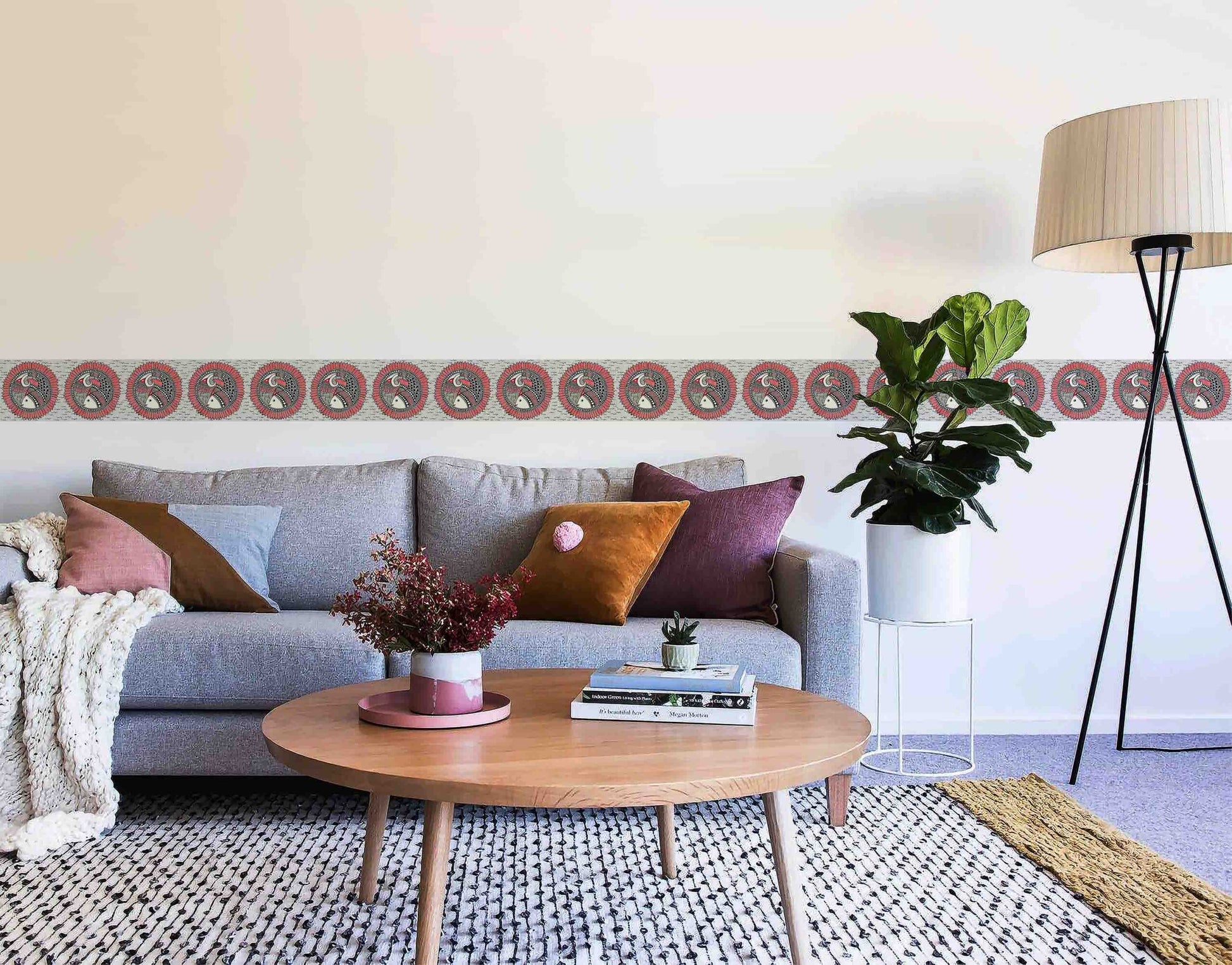 Decorative Artistic Fish Grey Ethnic Wallpaper Border