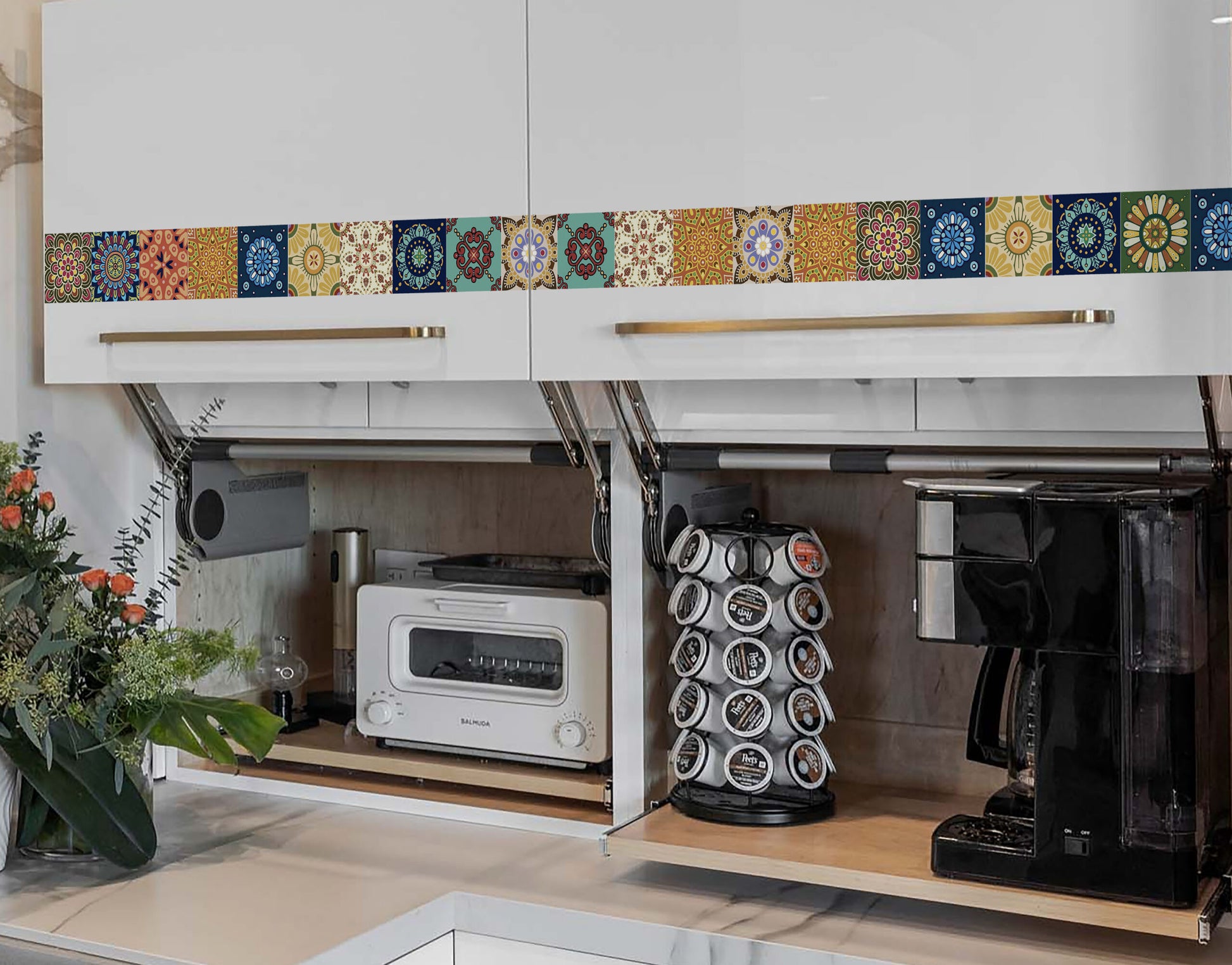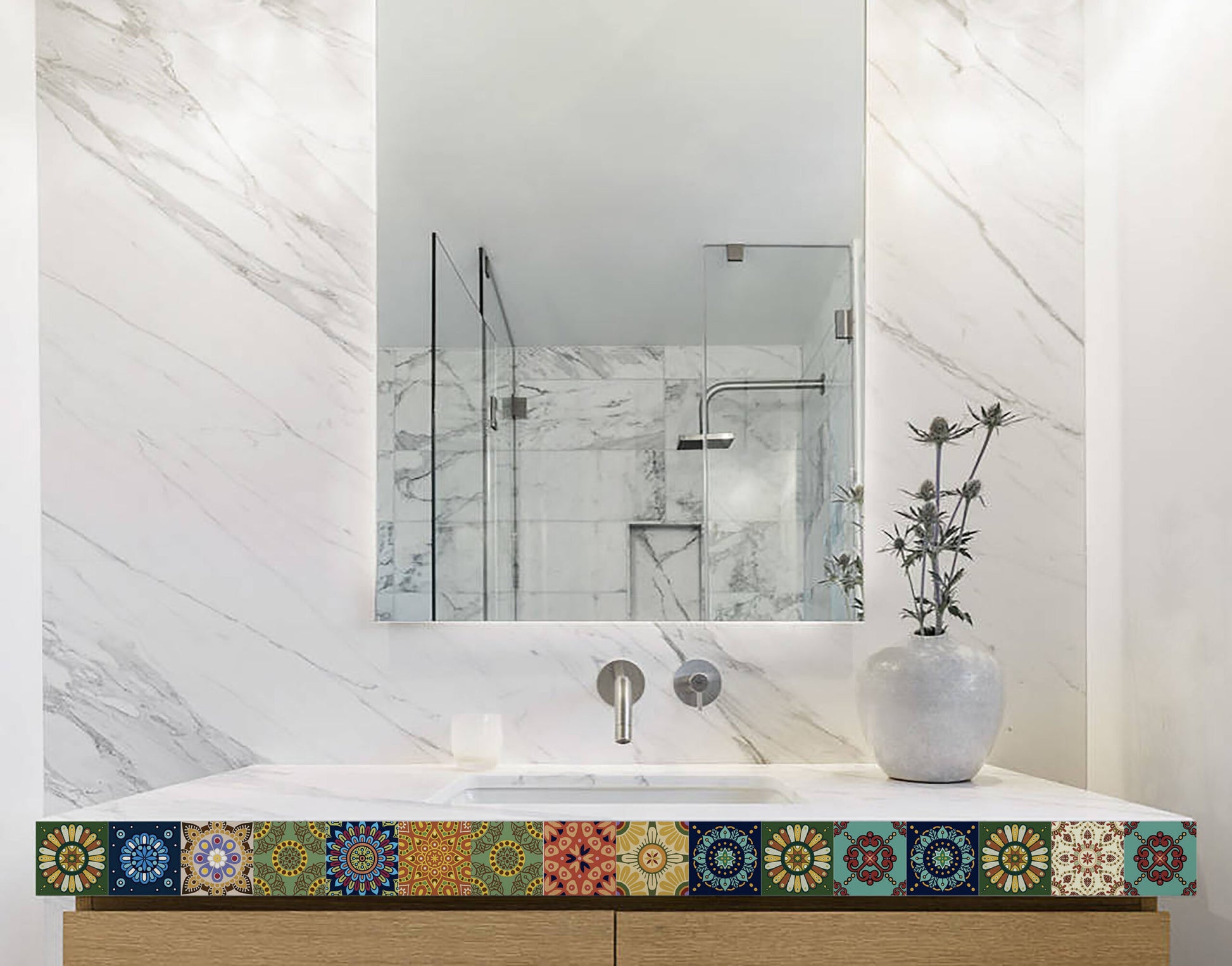 Fractal Pattern Tile Sticker Multipurpose Decorative Self-Adhesive Border for Kitchen Backsplash, Furniture, Wall, Cupboard, Staircase