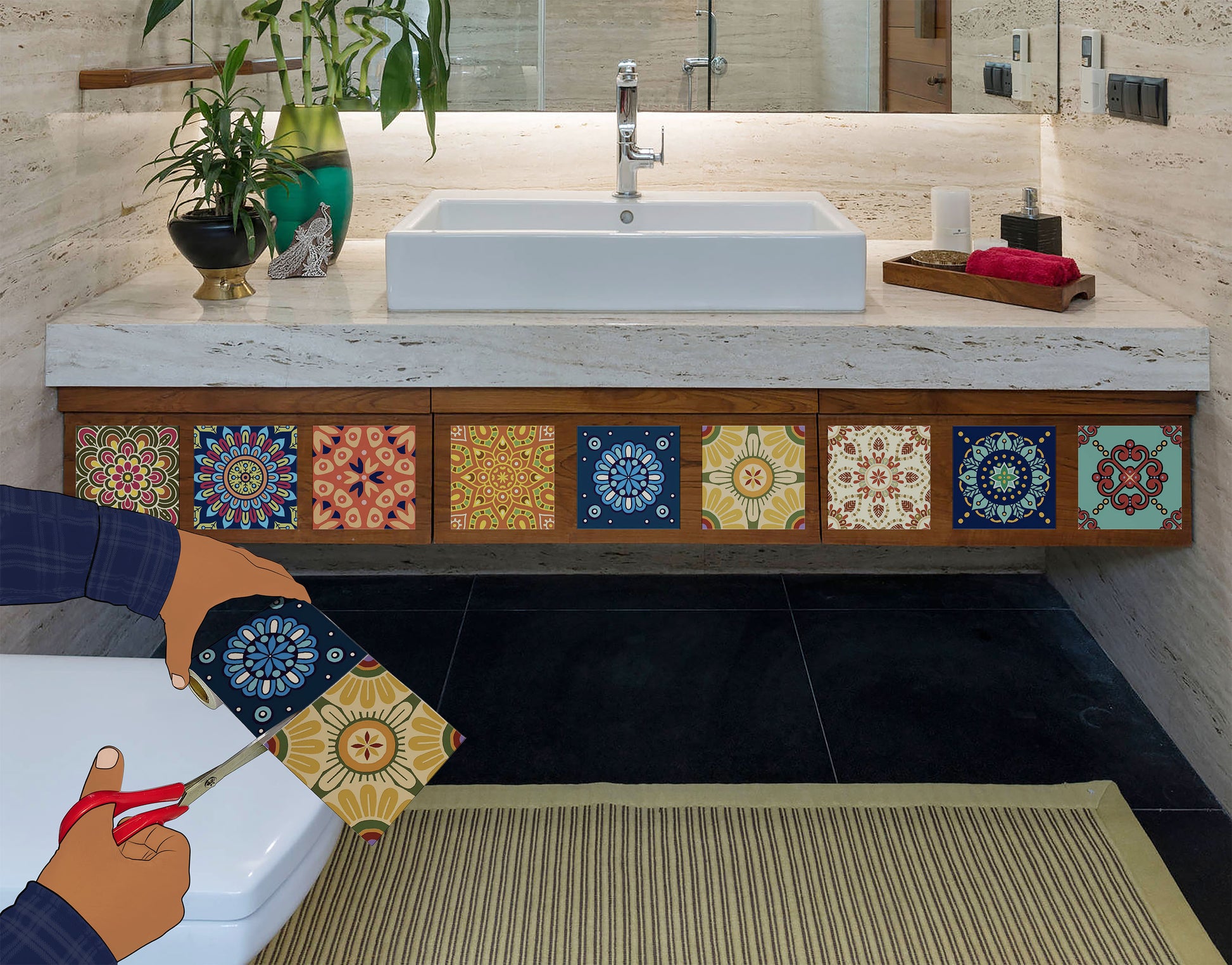 - Design is Illustrative with a Texture Background to give a Natural Tile Look in your Bathroom / Kitchen / Bedroom / Living room.