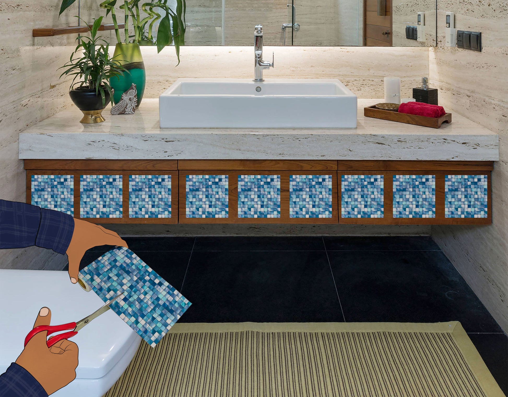 - Design is Illustrative with a Texture Background to give a Natural Tile Look in your Bathroom / Kitchen / Bedroom / Living room.