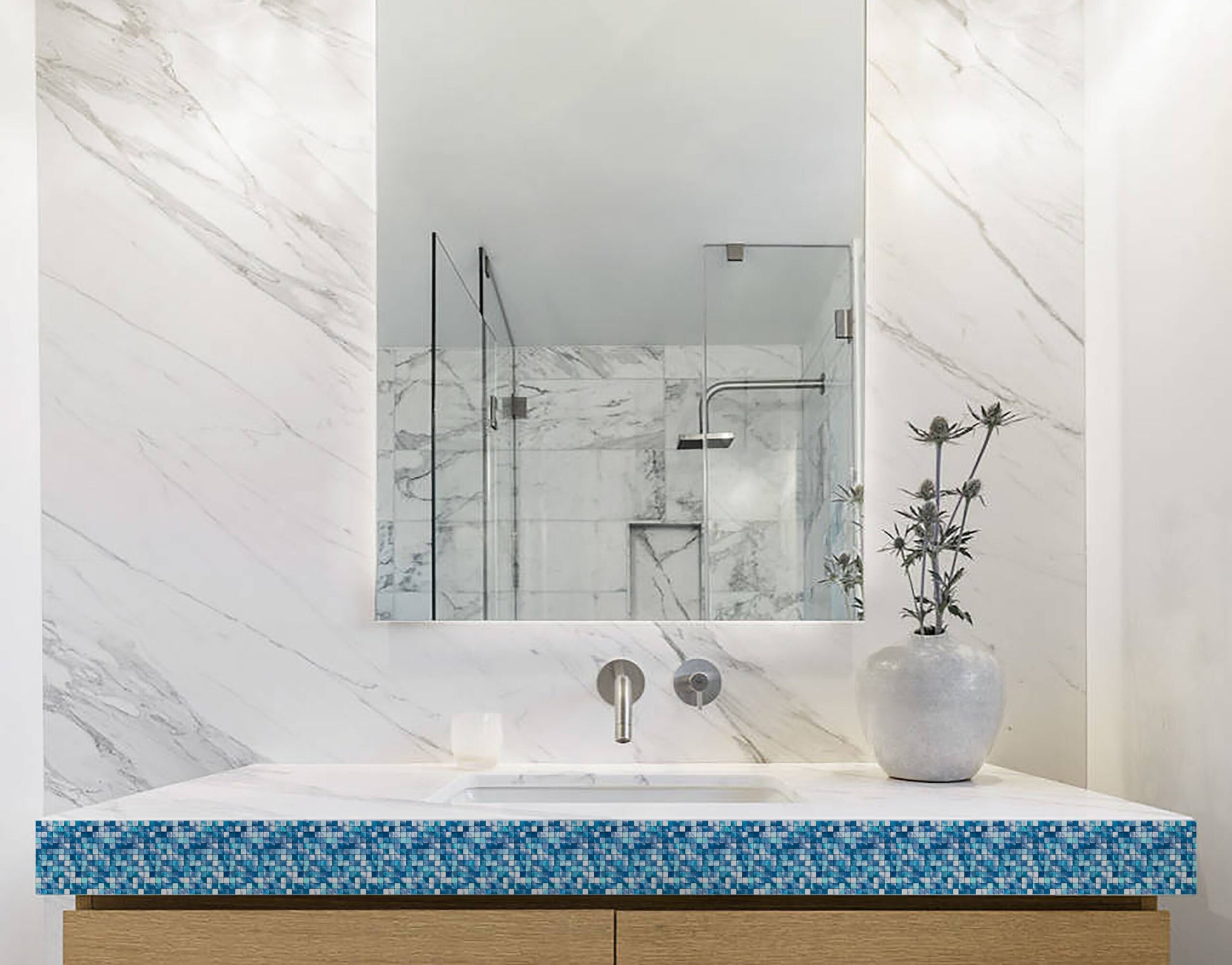 Aqua Blue Glass Mosaic Tile Sticker Glossy Durable Border Roll