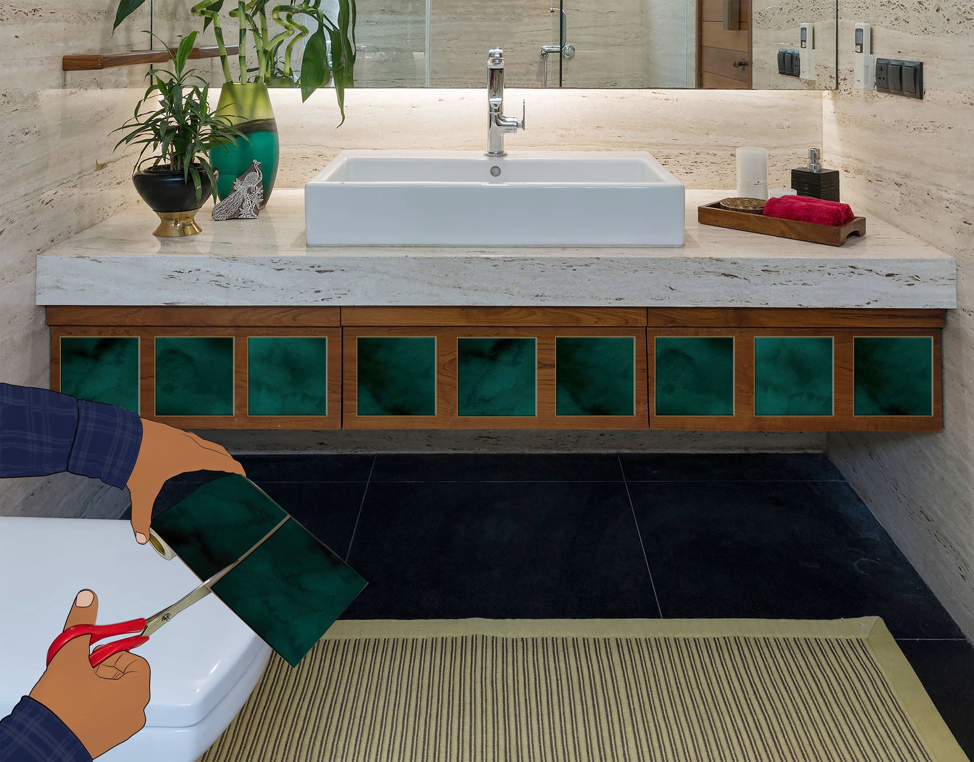 - Design is Illustrative with a Texture Background to give a Natural Tile Look in your Bathroom / Kitchen / Bedroom / Living room.