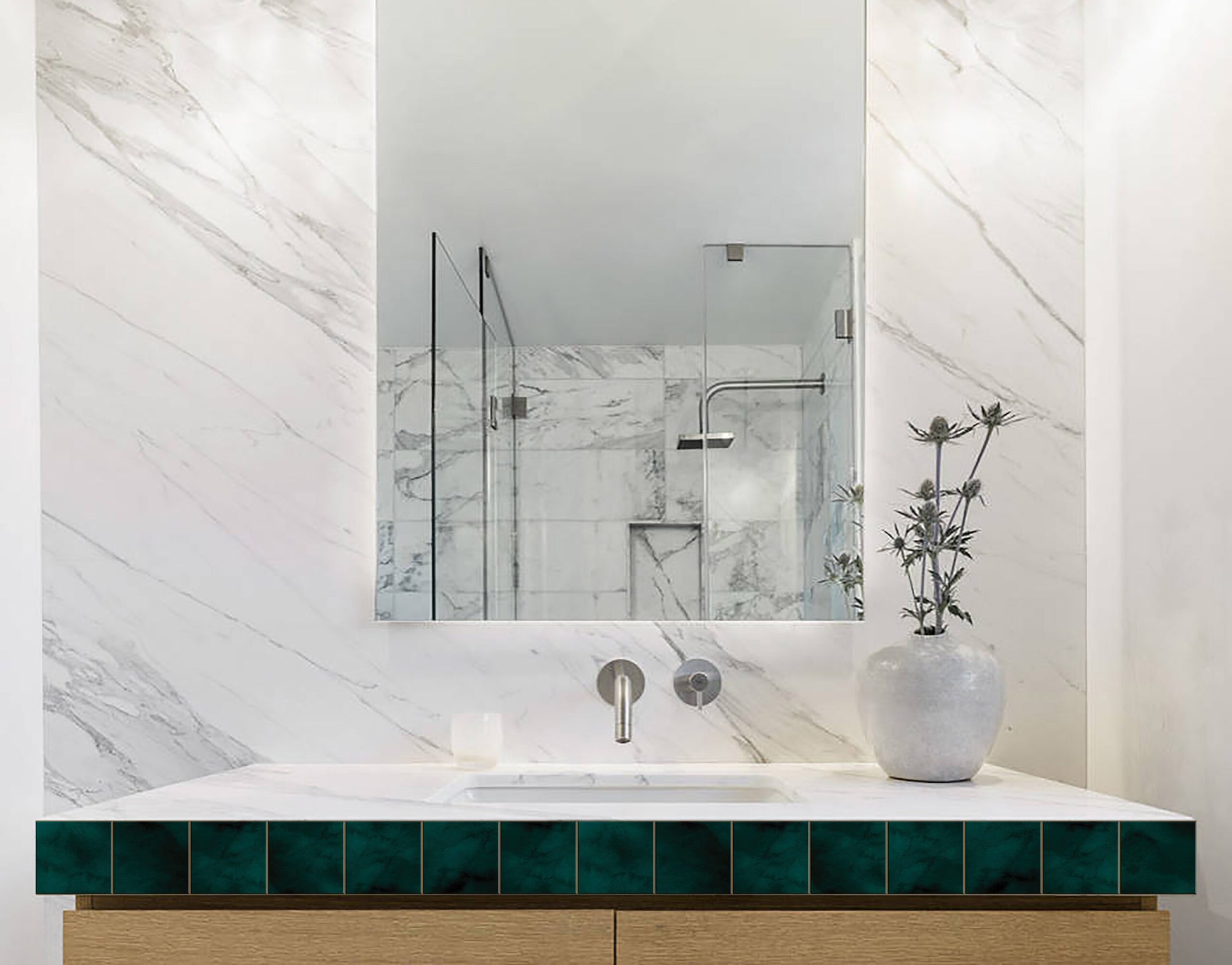 Bottle Green Tile Sticker Multipurpose Decorative Self-Adhesive Border for Kitchen Backsplash, Furniture, Wall, Cupboard, Staircase