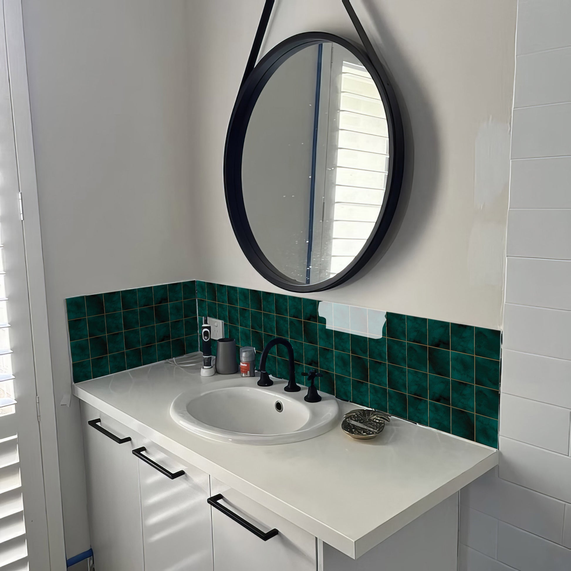 Bottle Green Tile Sticker Durable Surface Decoration Film for Kitchen, Cabinet, Table, Furniture, Wall, Bathroom, Door, Refurbishment