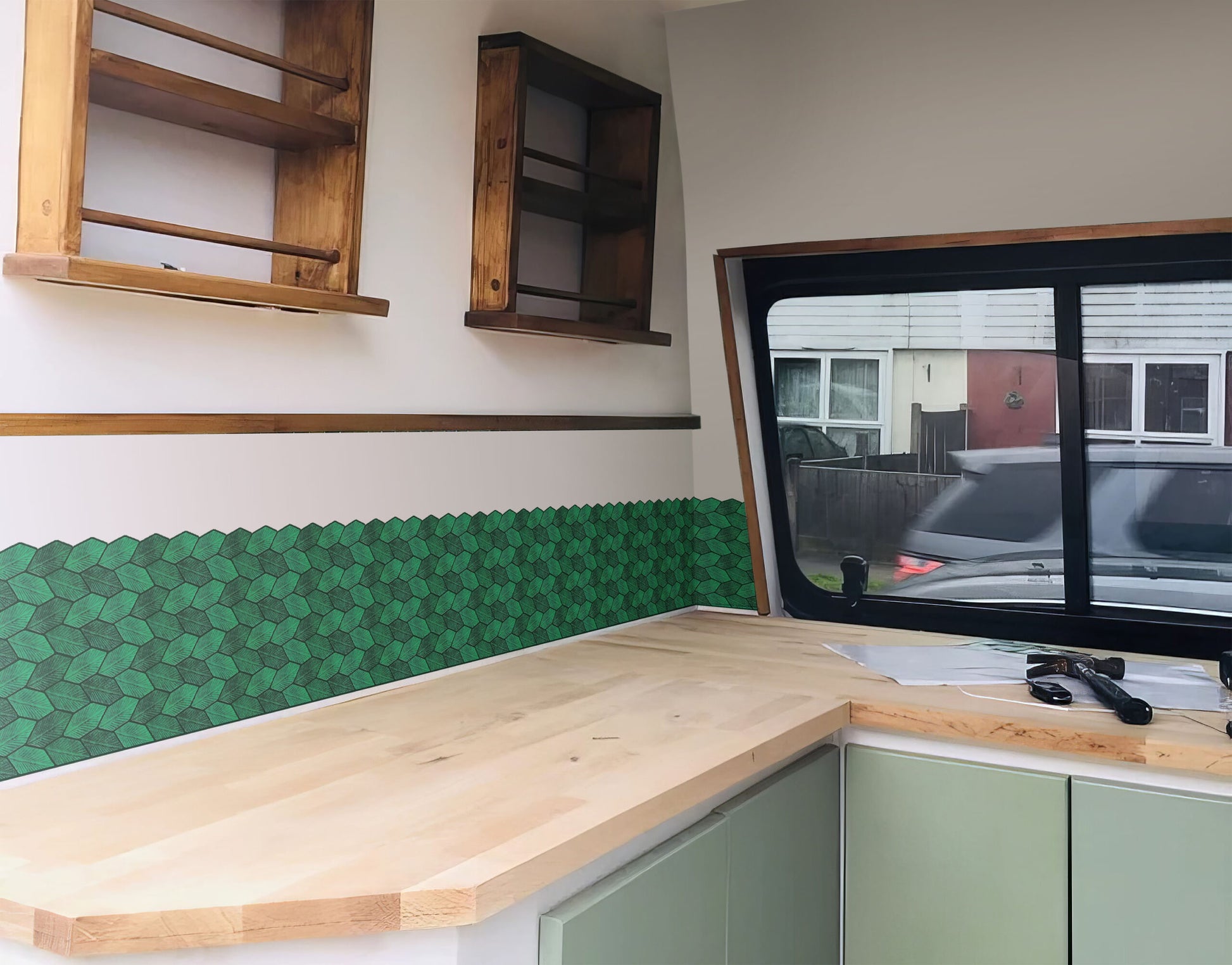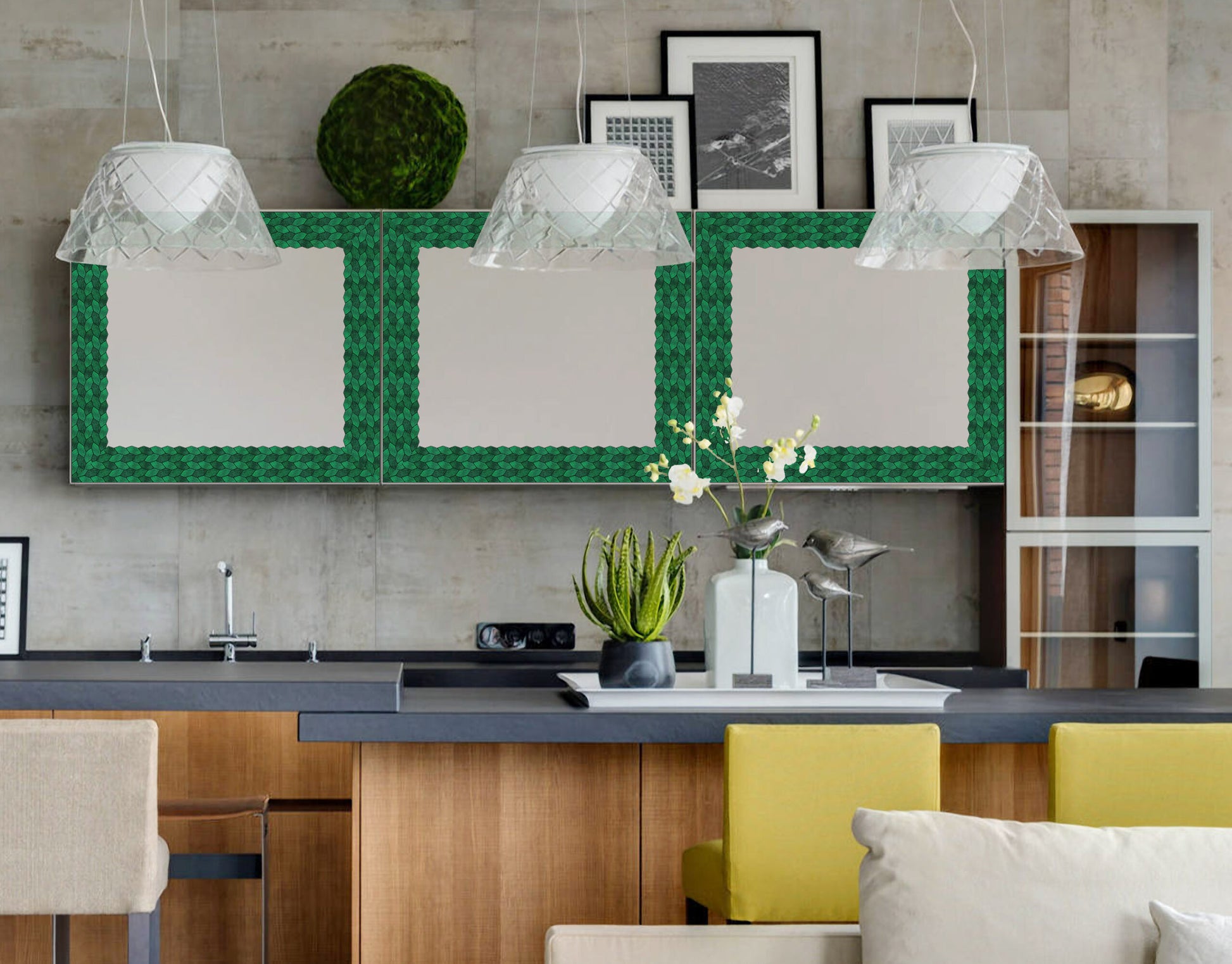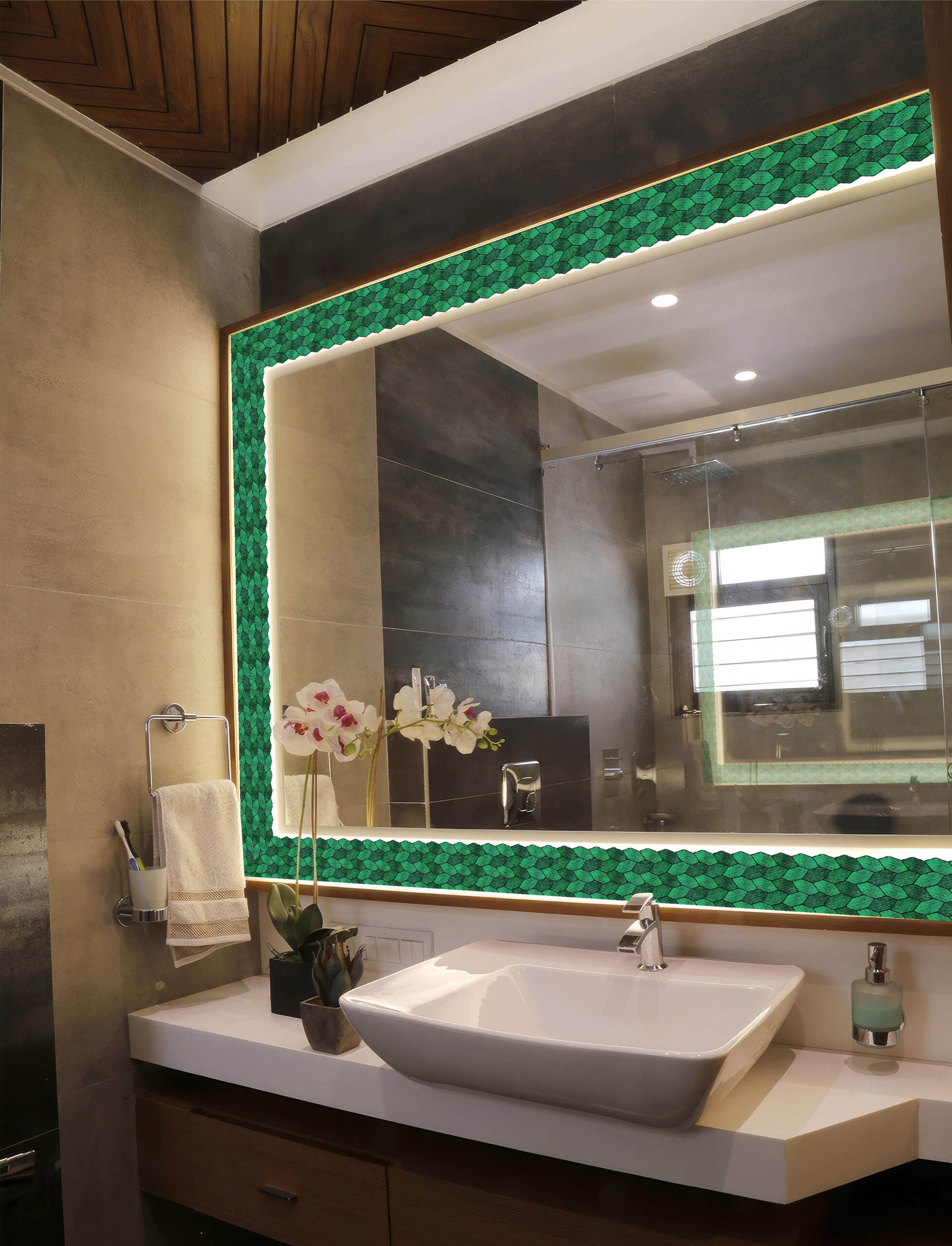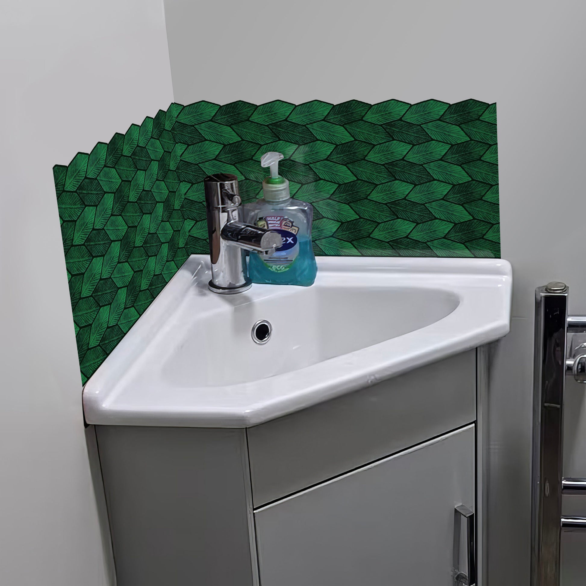 Leafy Emerald Tile Sticker - Waterproof Easy Clean Durable Vinyl Decorative Film for Kitchen Counter, Washbasin, Table, Wall, Cupboard