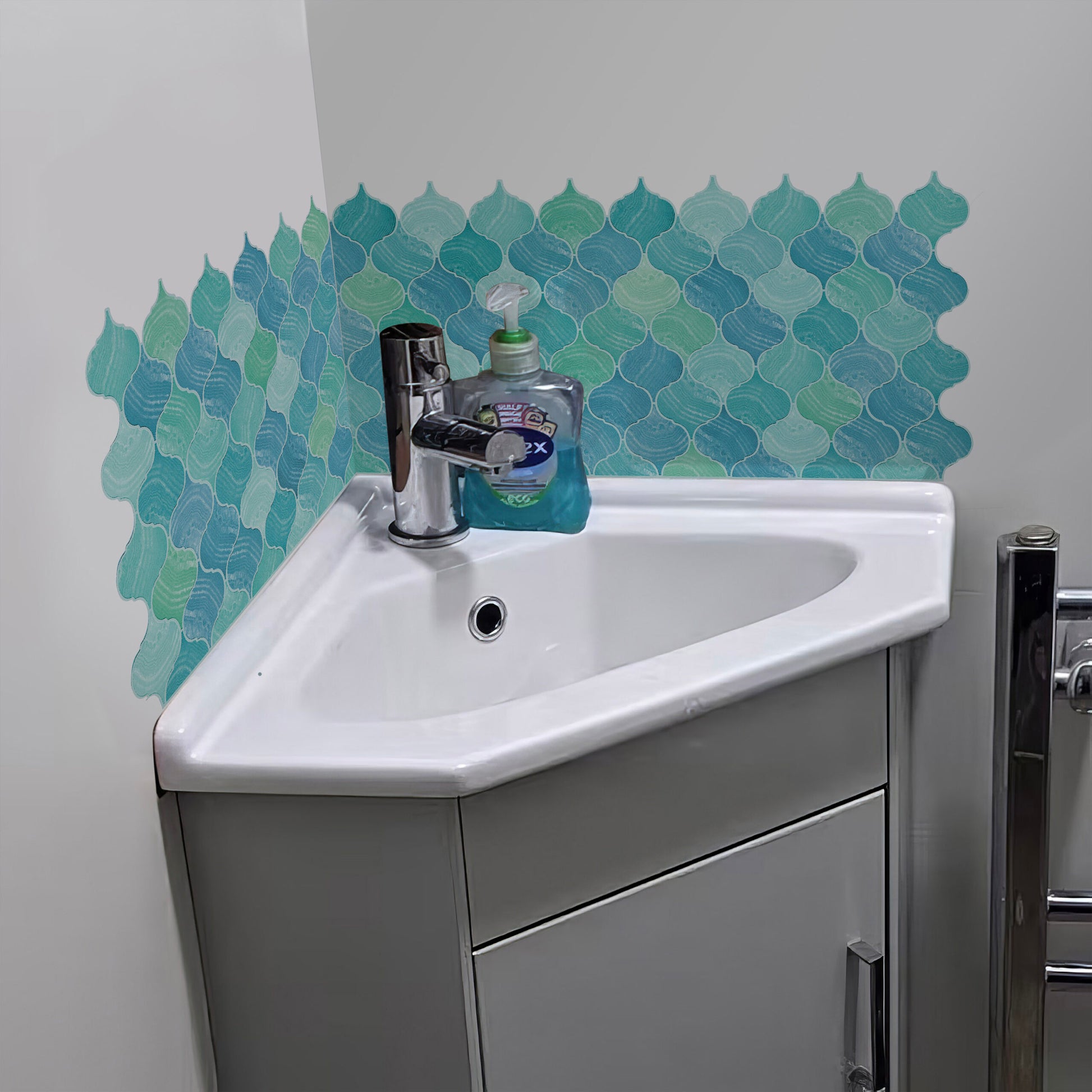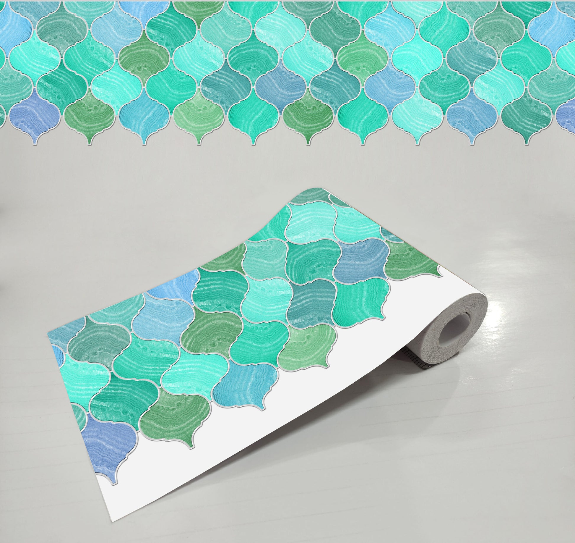 Mosaic Lantern Blue Green Shades Durable Surface Decoration Film for Kitchen, Cabinet, Table, Furniture, Wall, Bathroom, Door, Refurbishment