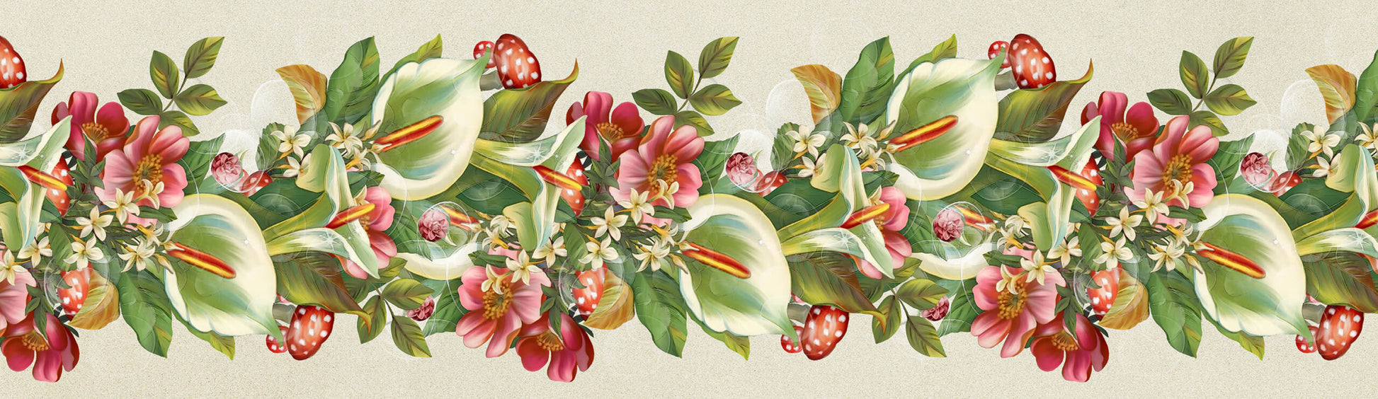 Green Anthurium and Pink Anemones Flowers Wall Border