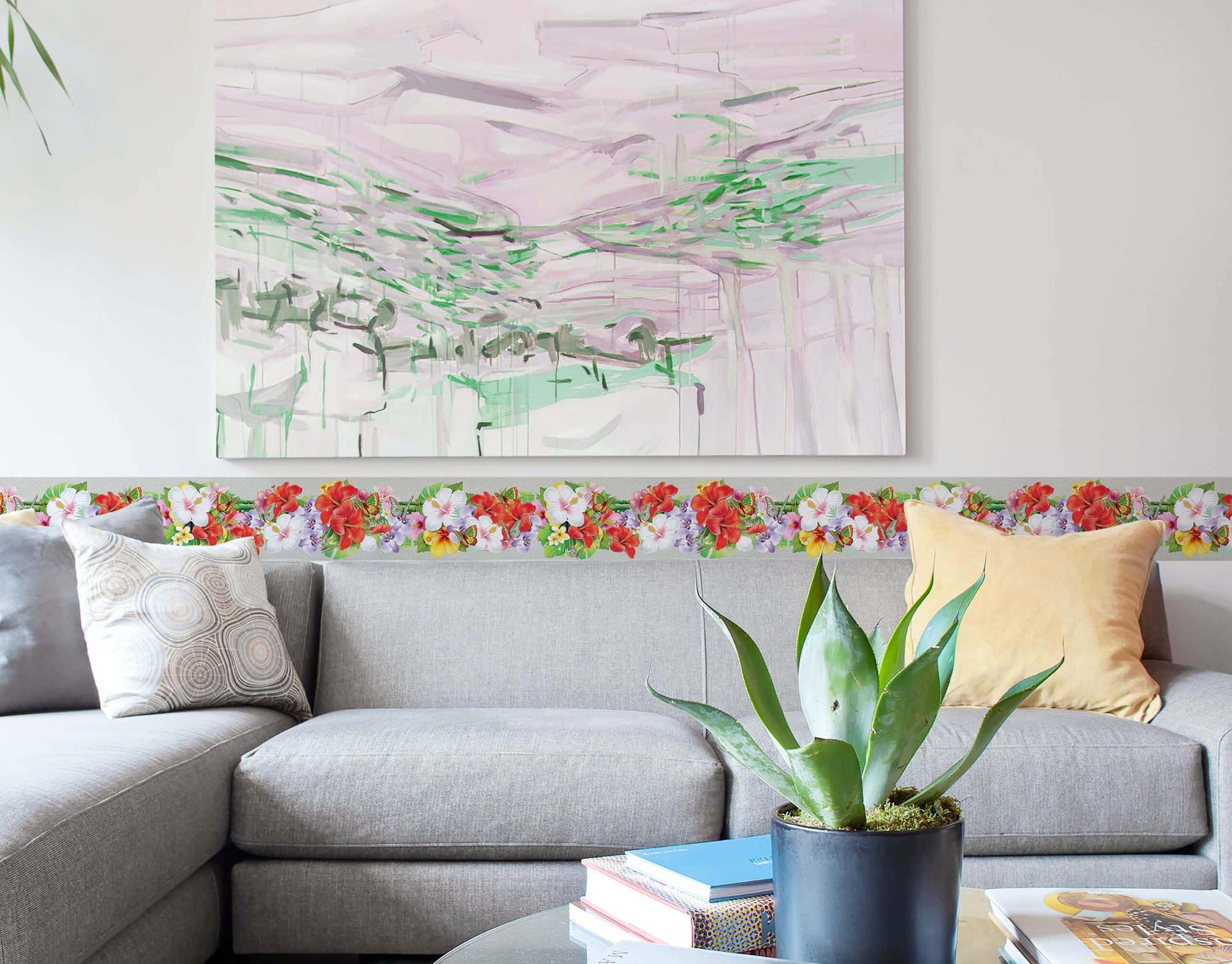 Orchid Hibiscus Flowers With Butterflies Wall Border