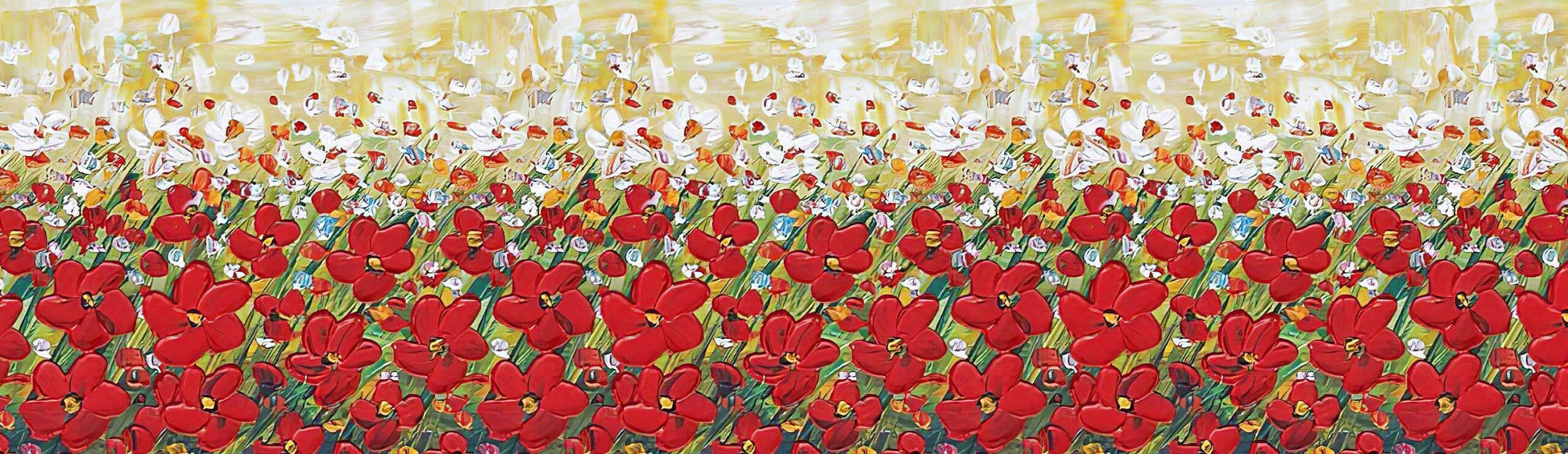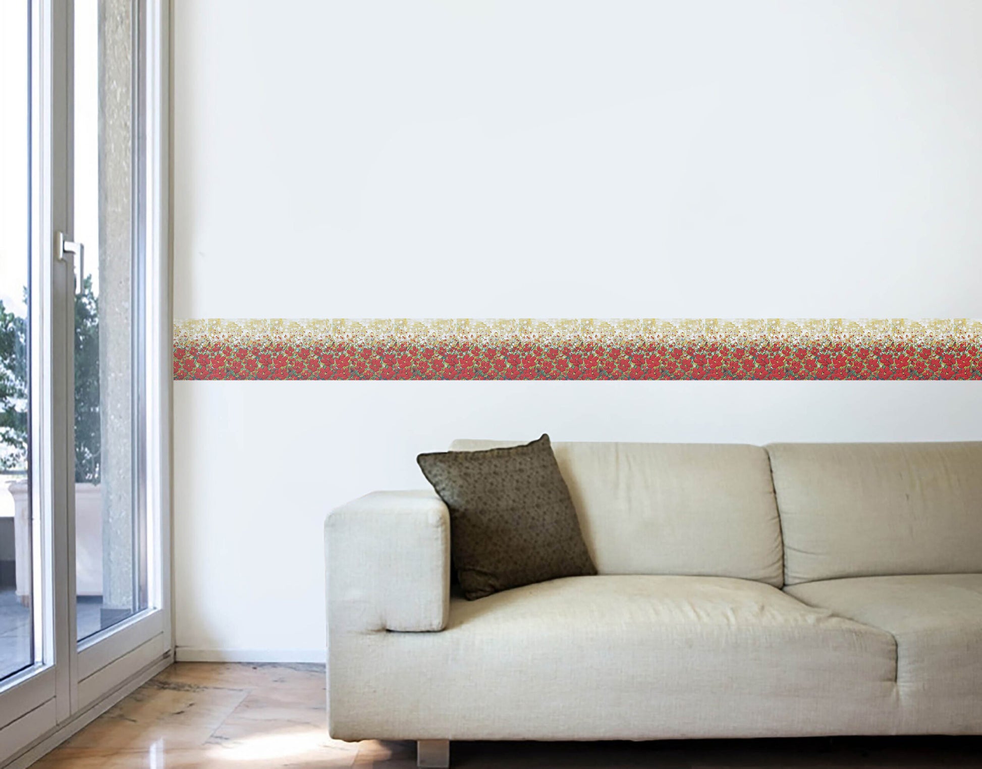 Designer Artistic Red and White Flowers Wall Border Sticker