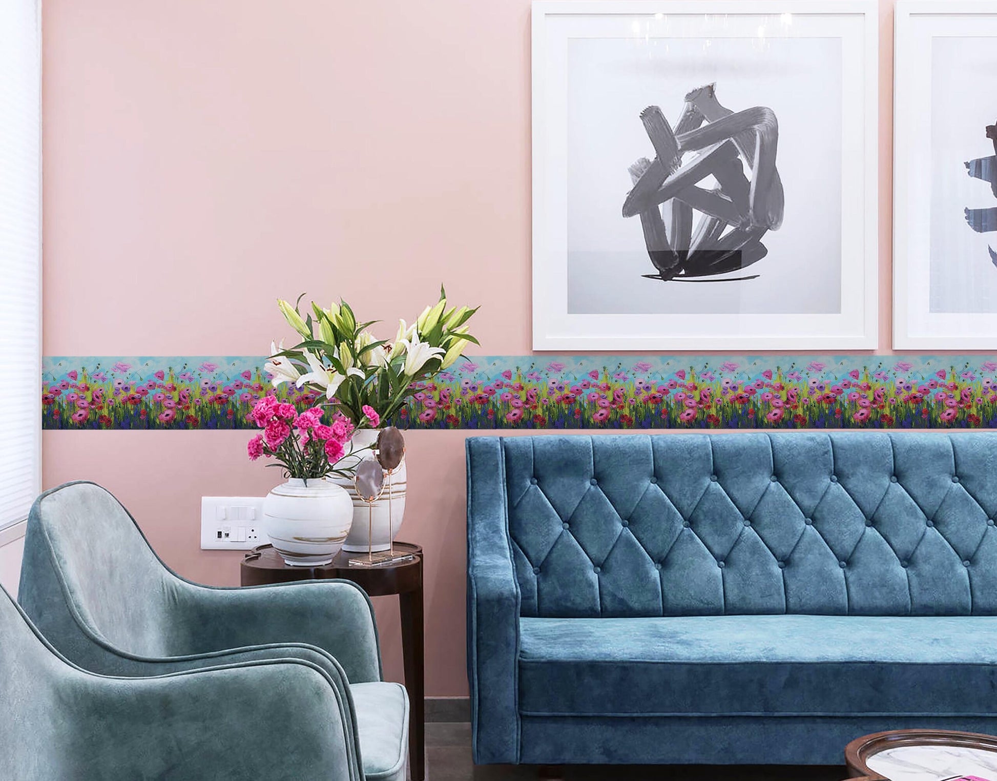 Artistic Orchid Flowers Painted Wall Border Sticker