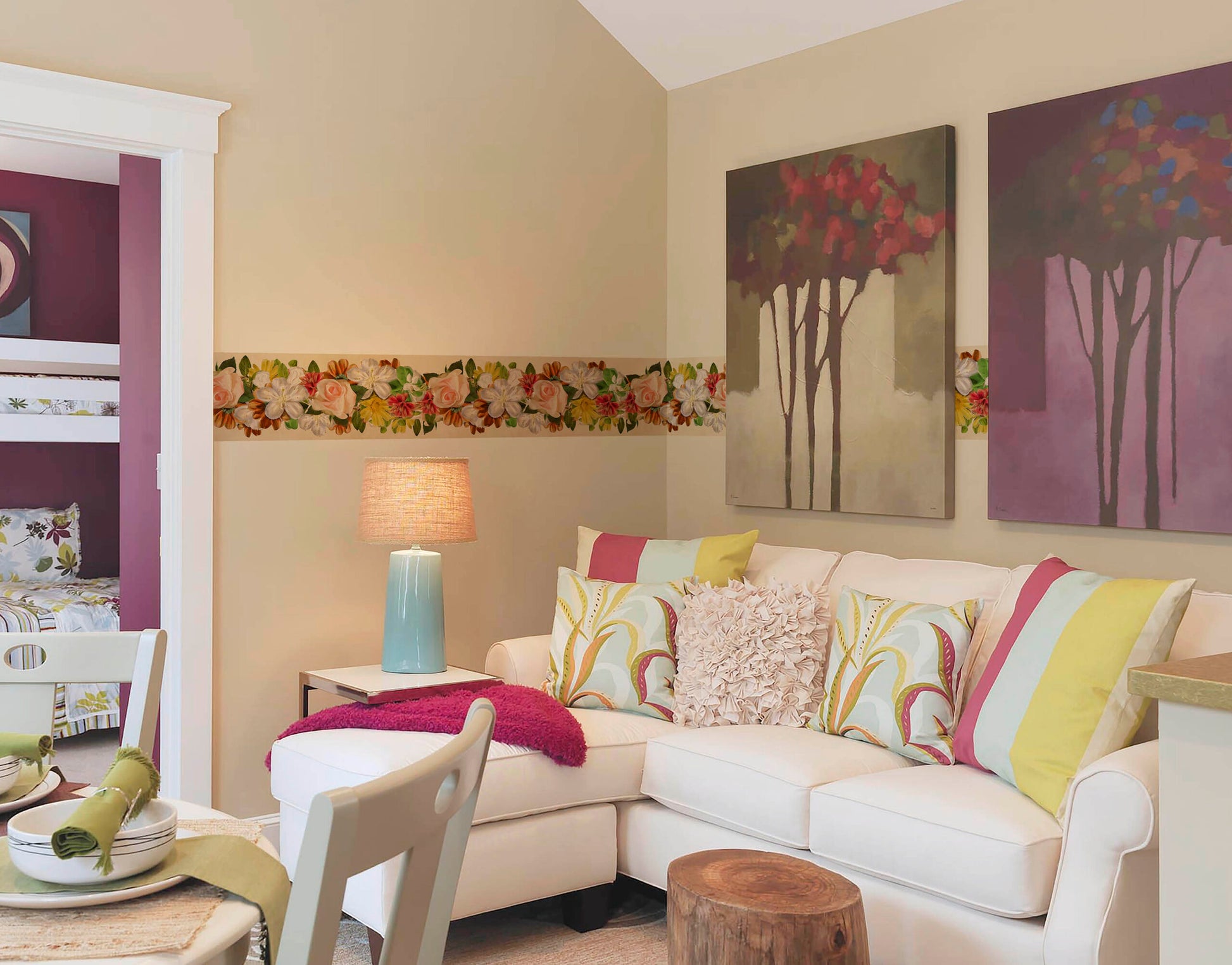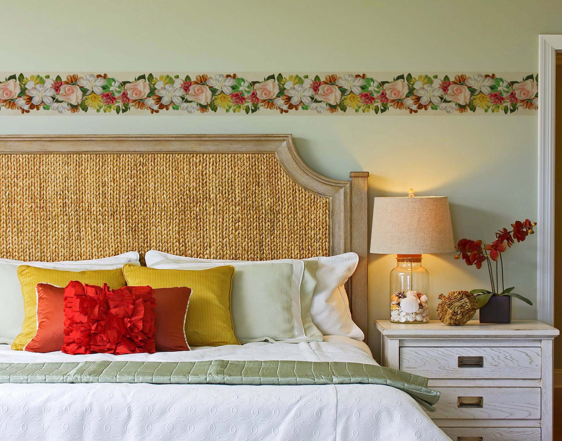 Multicolor Flowers Painted Vinyl Wall Border