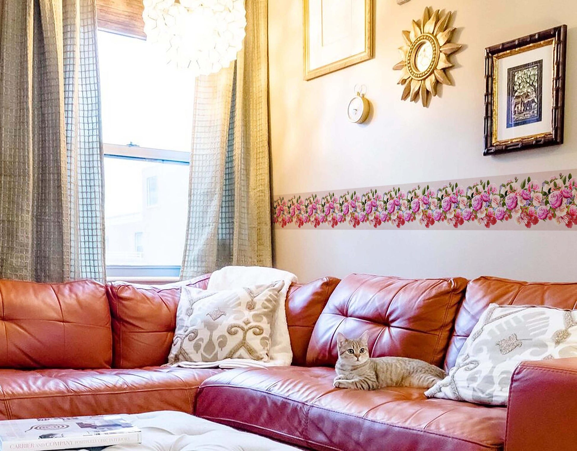 Multicolor Rose Flowers Self Adhesive Wallpaper Border