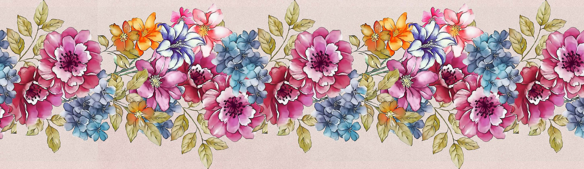 Artistic Blue Iris and Wild Rose Flowers Border Sticker