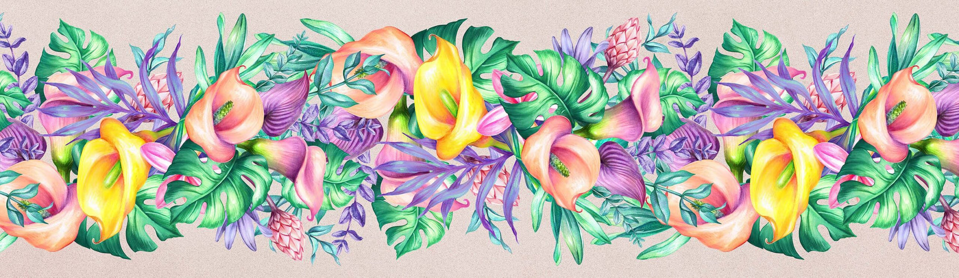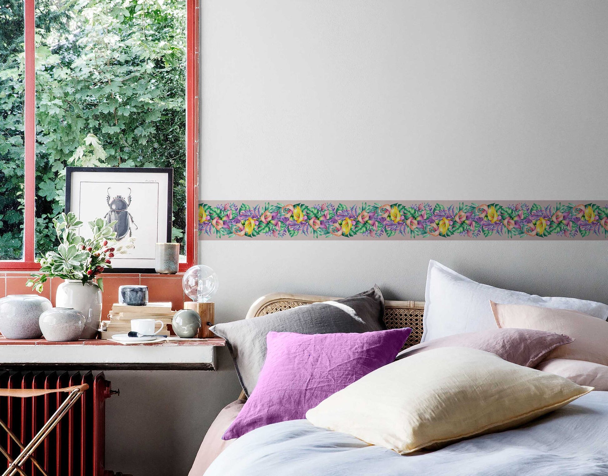 Multicolor Flowers and Leaves Painted Wall Border For Room