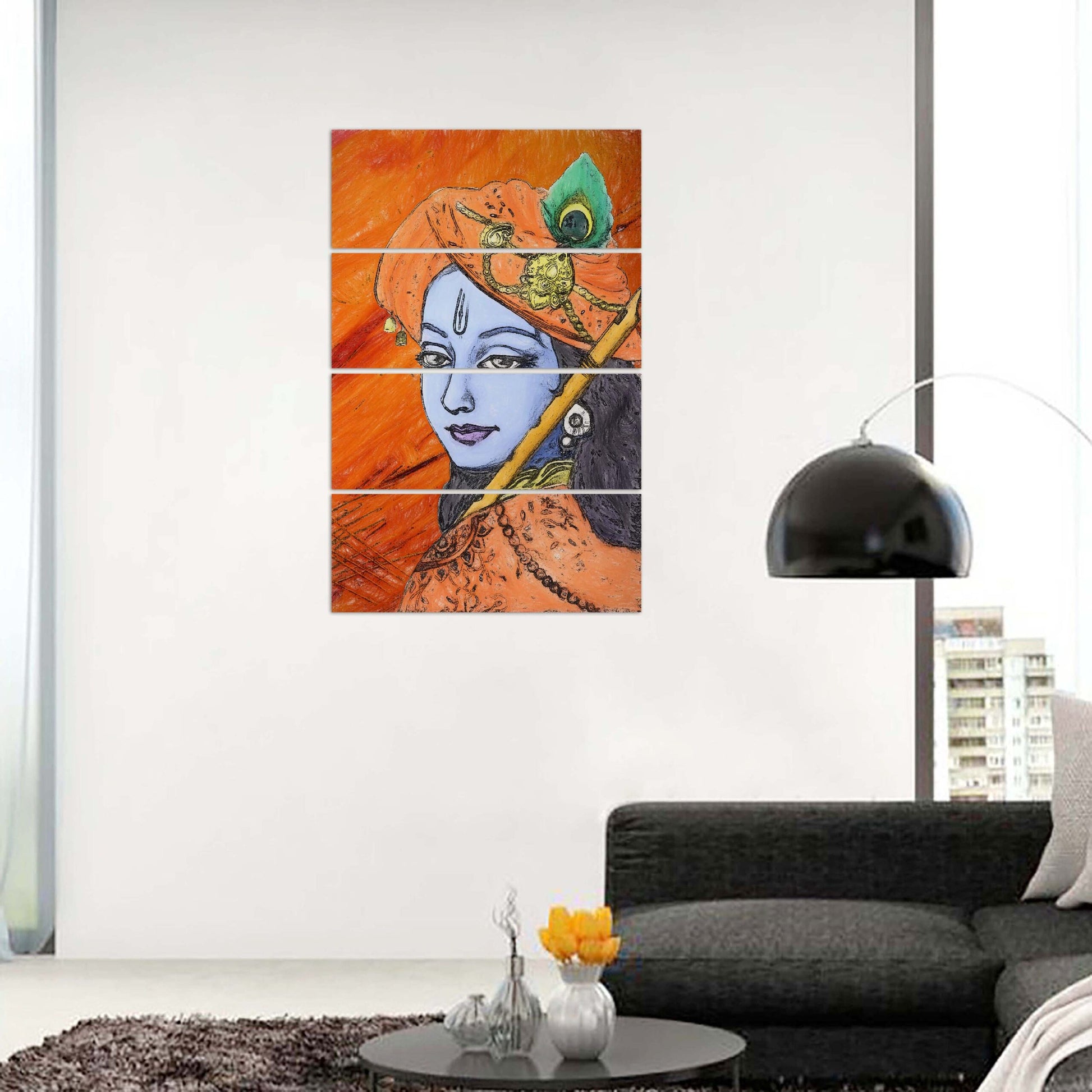 Lord Krishna with Flute on Orange Background Creative Graphic Art Wall Digital Print