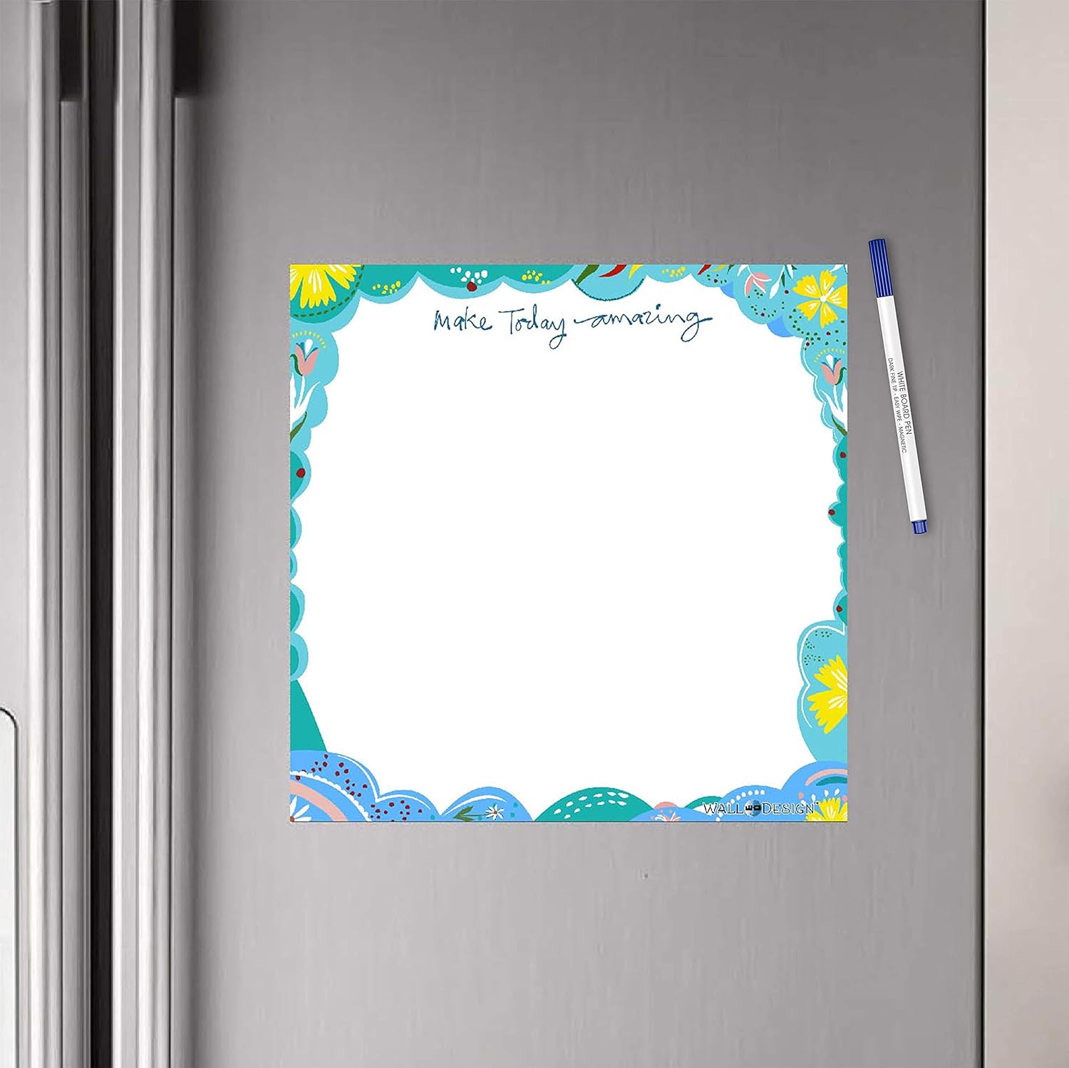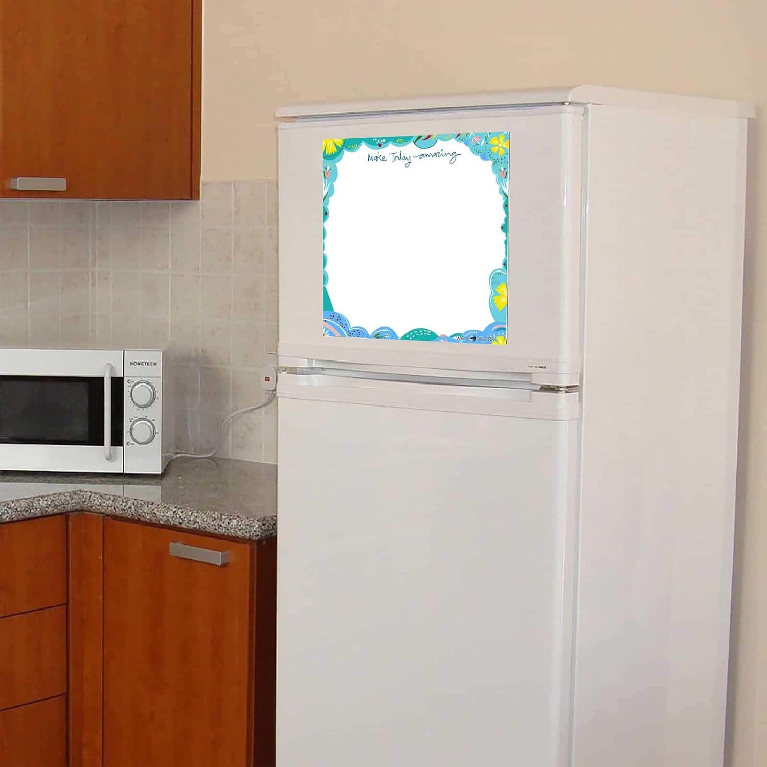 Make Today Amazing Writing Film has the potential to trigger your attention. Let your thoughts flow on this splendid WallDesign Magnetic Memo Board.The size of the Magnetic Writing Film is 1ft by 1ft. This is ideal for sticking on your fridge / godrej or in your office desk space.